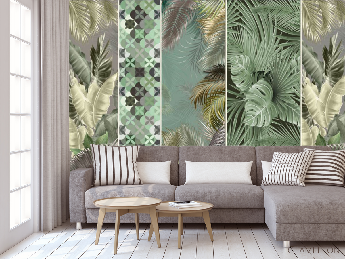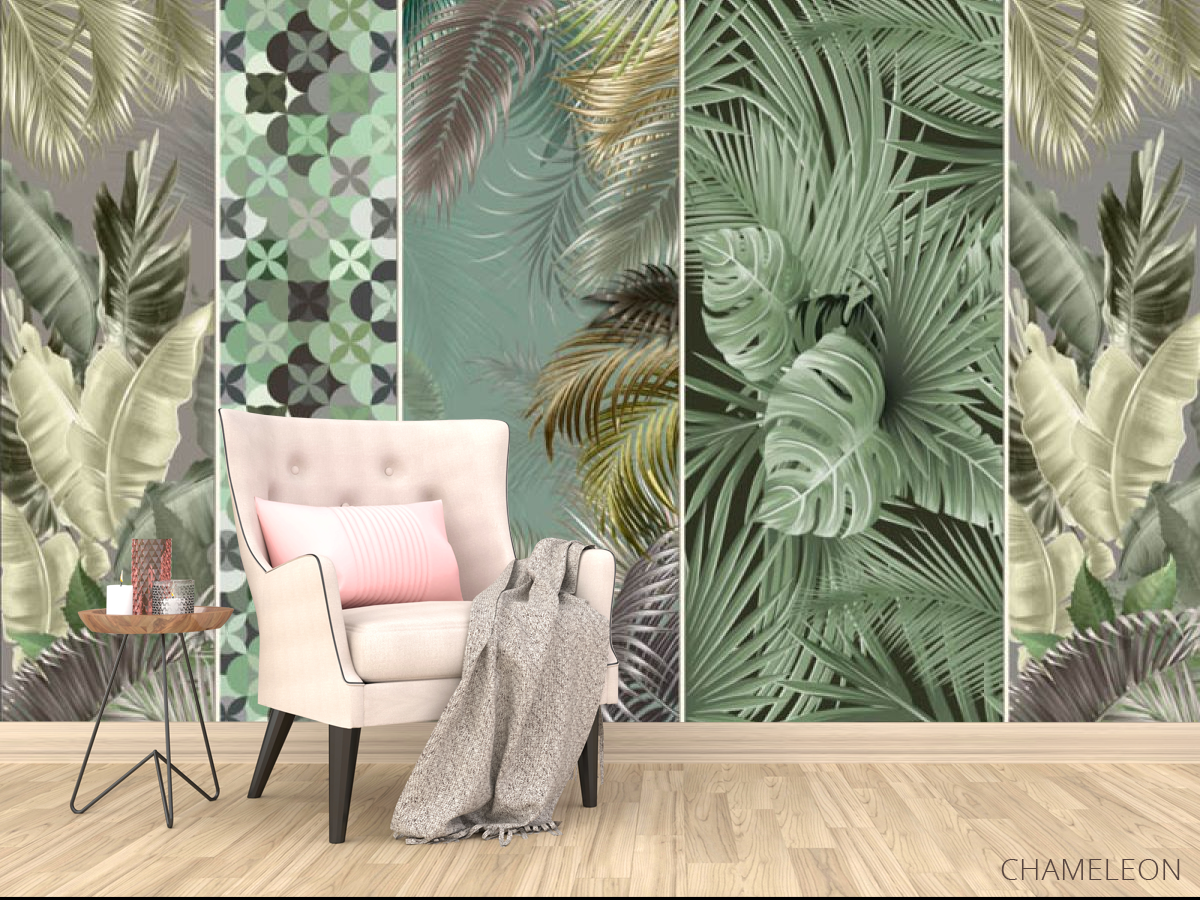 Современный интерьер в большинстве случаев исполнен из пастельных оттенков и порой хочется внести в них немного яркости. Фотообои тропические листья станут отличным решениям для тех, кто желает разбавить стиль комнаты и придать ему природной бодрости, красочности и создать атмосферу жарких стран. Такие обои чудесно впишутся в обстановку спальни, кухни или гостиной. Фотообои Тропические листья добавят в дом комфорта и уюта, а также будут радовать глаз на протяжении многих лет. Обои изготовлены из материалов высокого качества, не вызывают аллергию и не выгорают на солнце. Вы можете выбрать бумажную или флизилиновую основу, но вне зависимости от этого, клеить их абсолютно легко: достаточно лишь нанести клей на стену и прикрепить полотно.