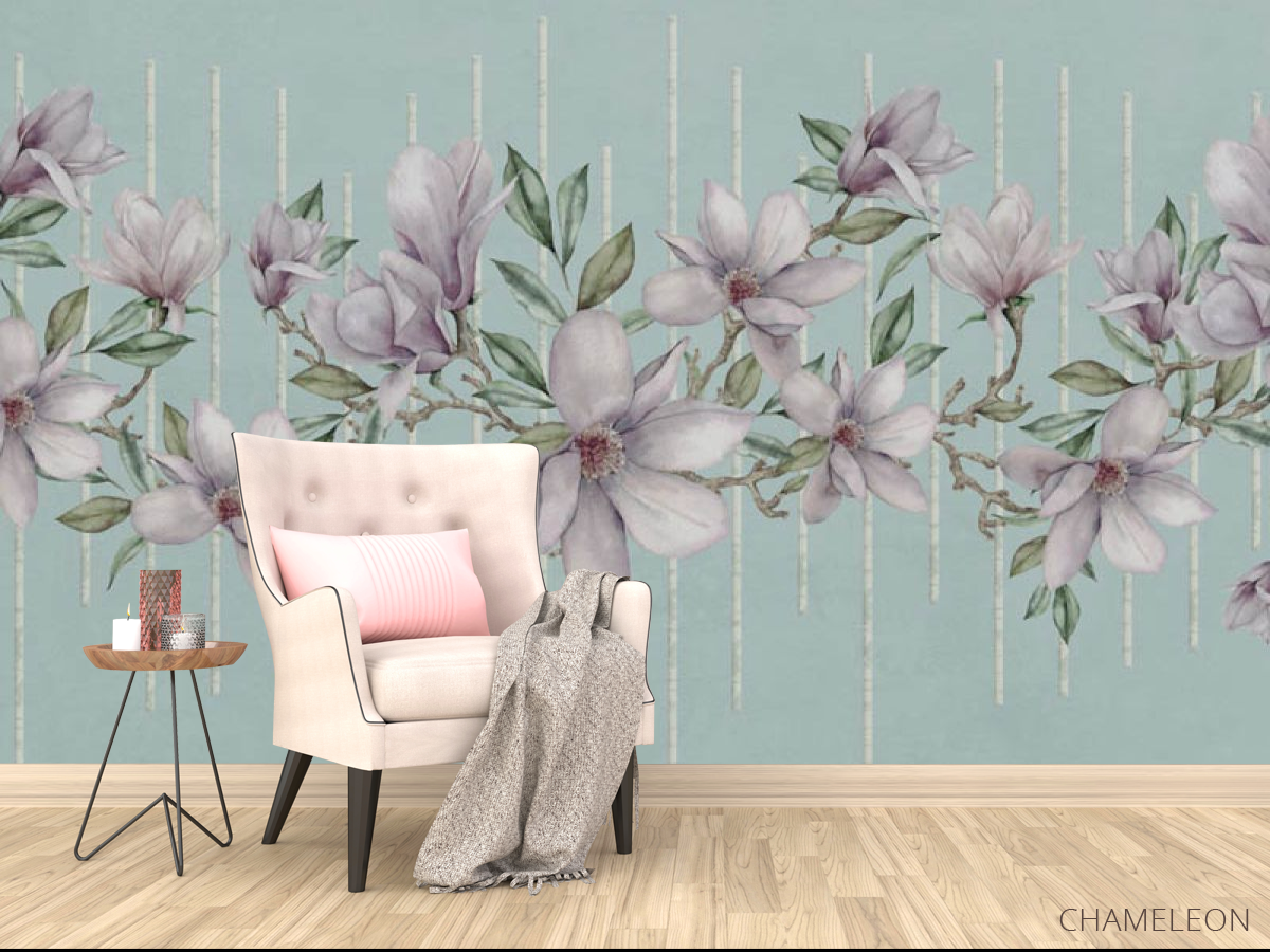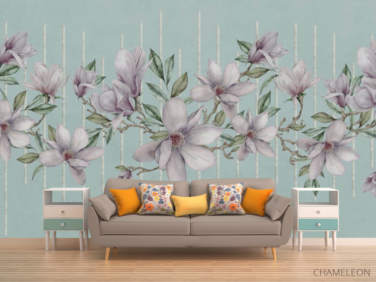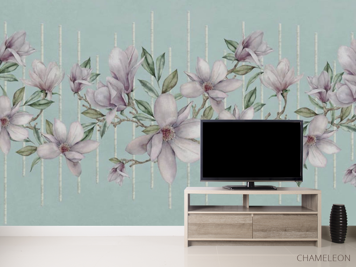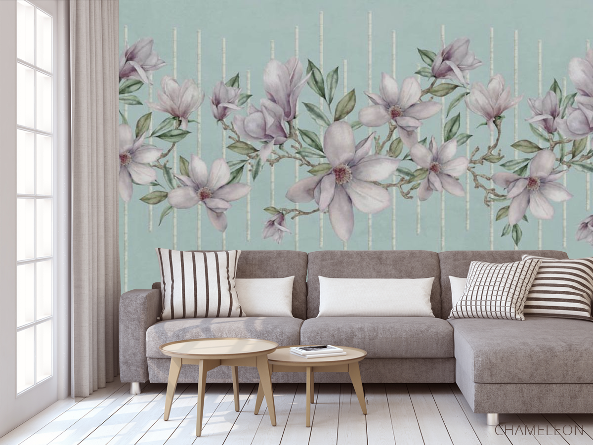 Фотообои Магнолии на фоне бирюзы