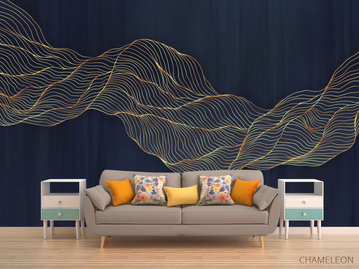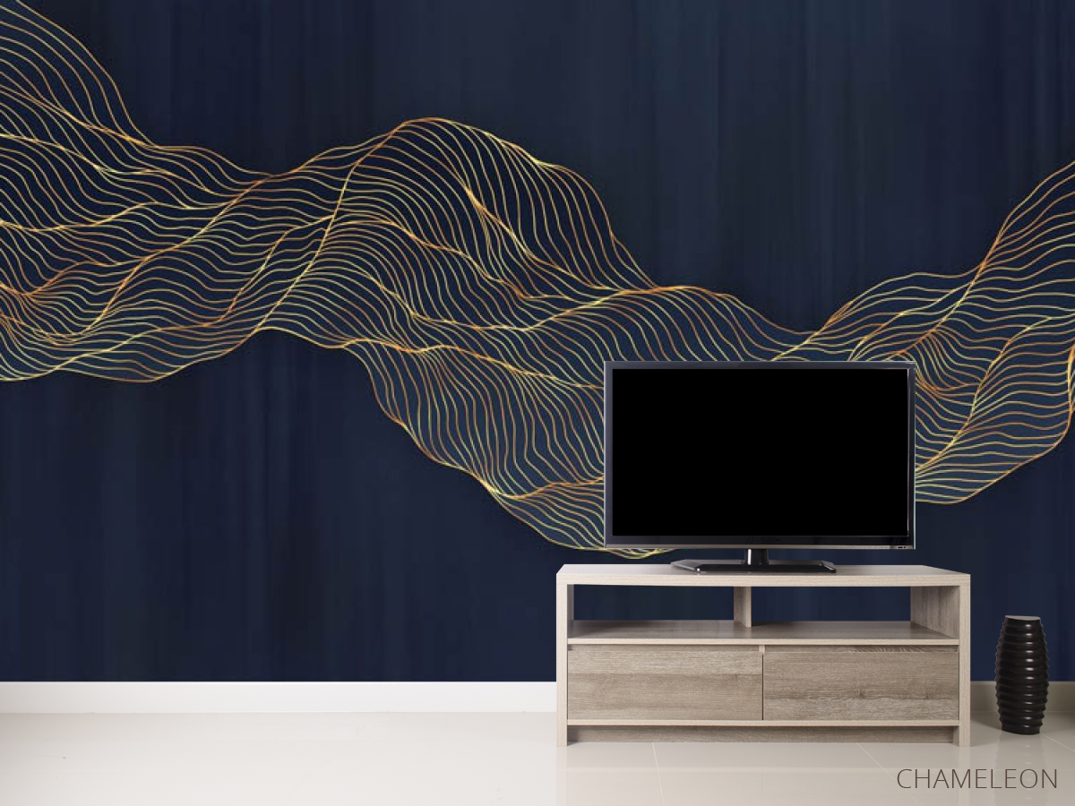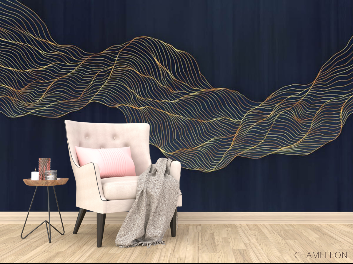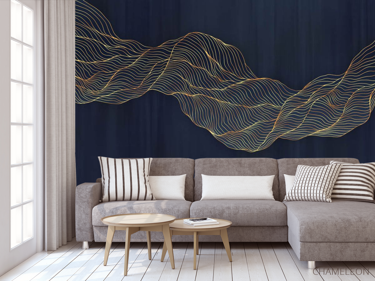 «Фотообои Абстрактные волны золотые на синем фоне», (арт. 31002) - купить в интернет-магазине Chameleon