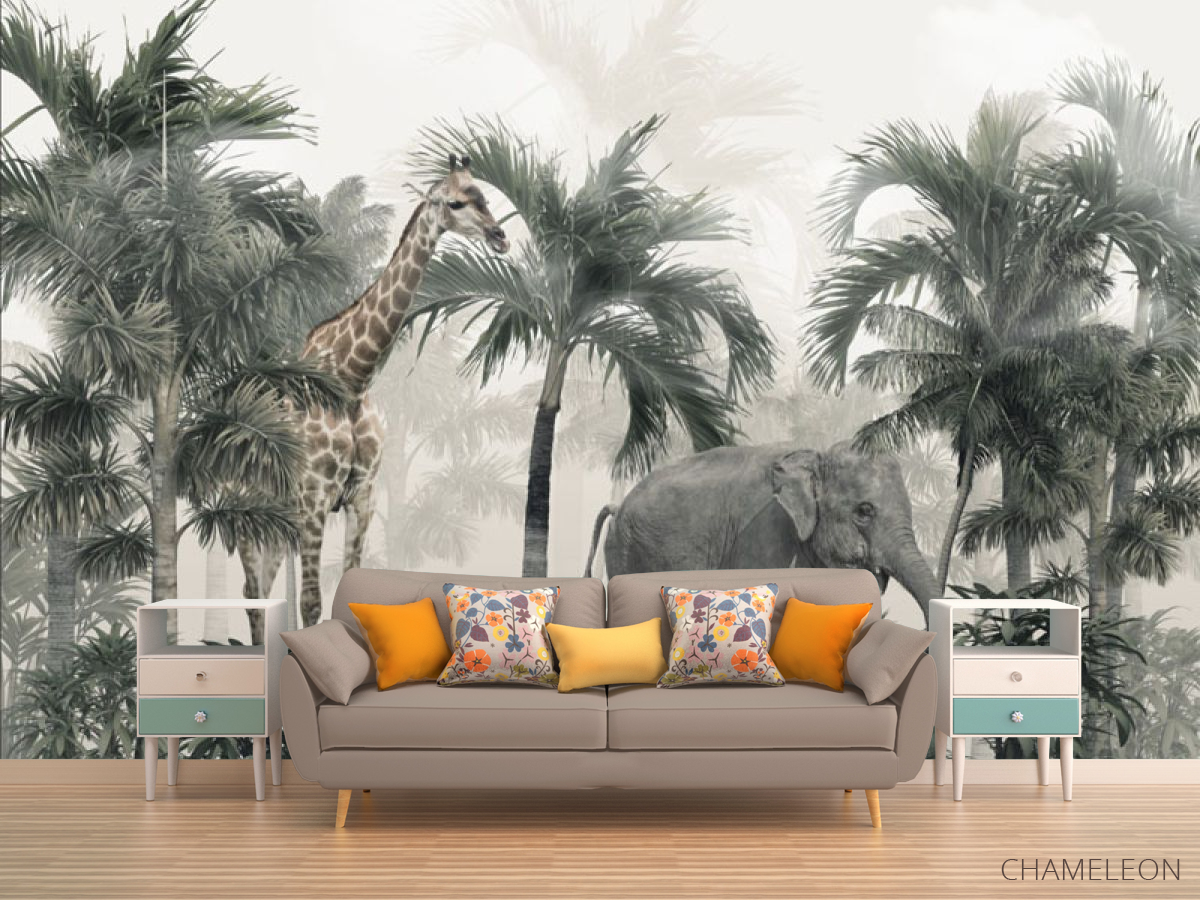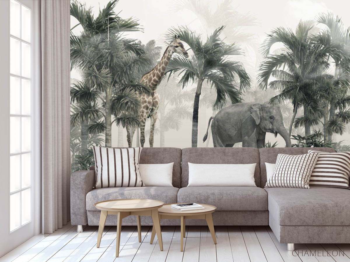 Фотообои Пальмы и тропические животные