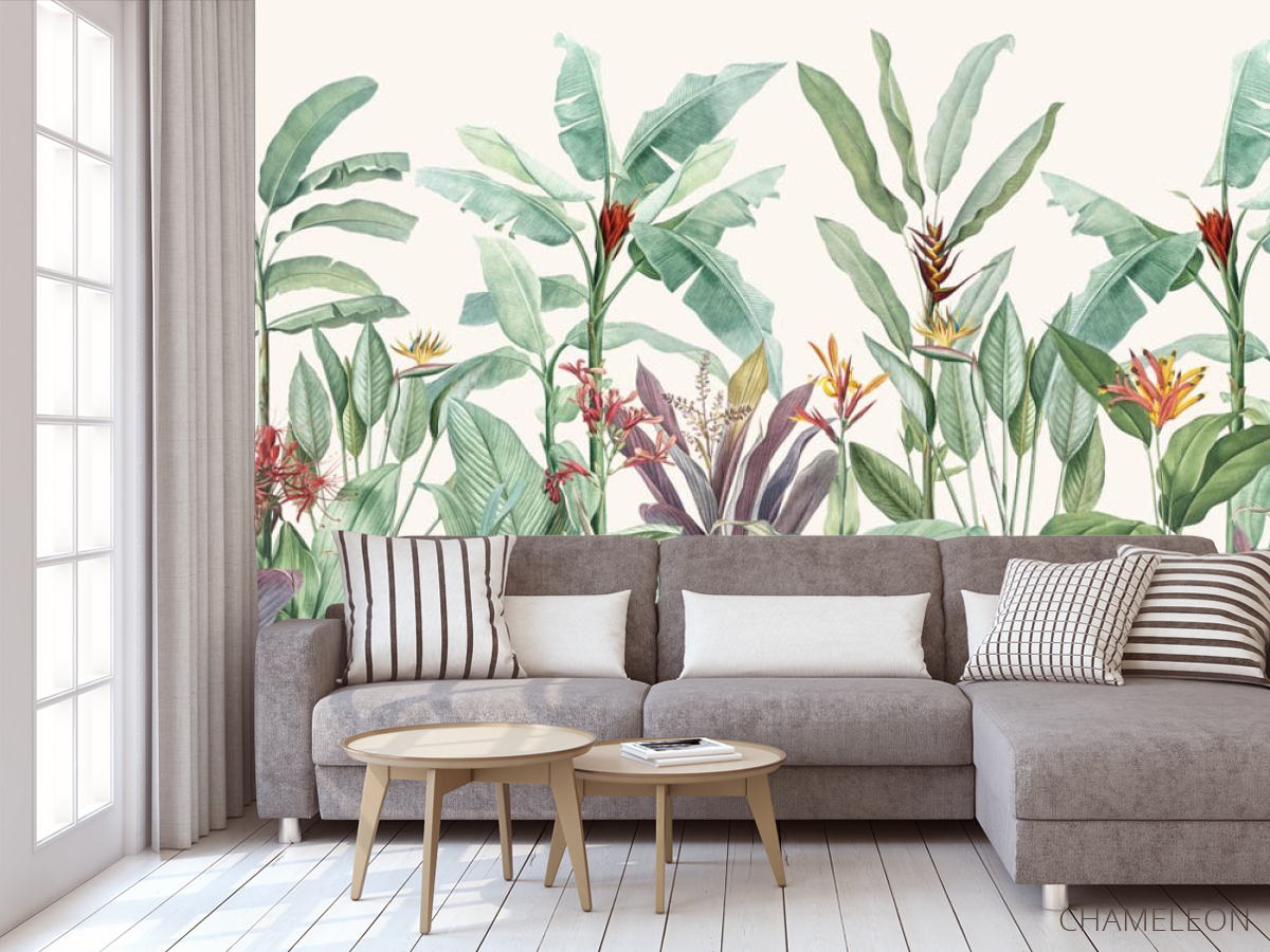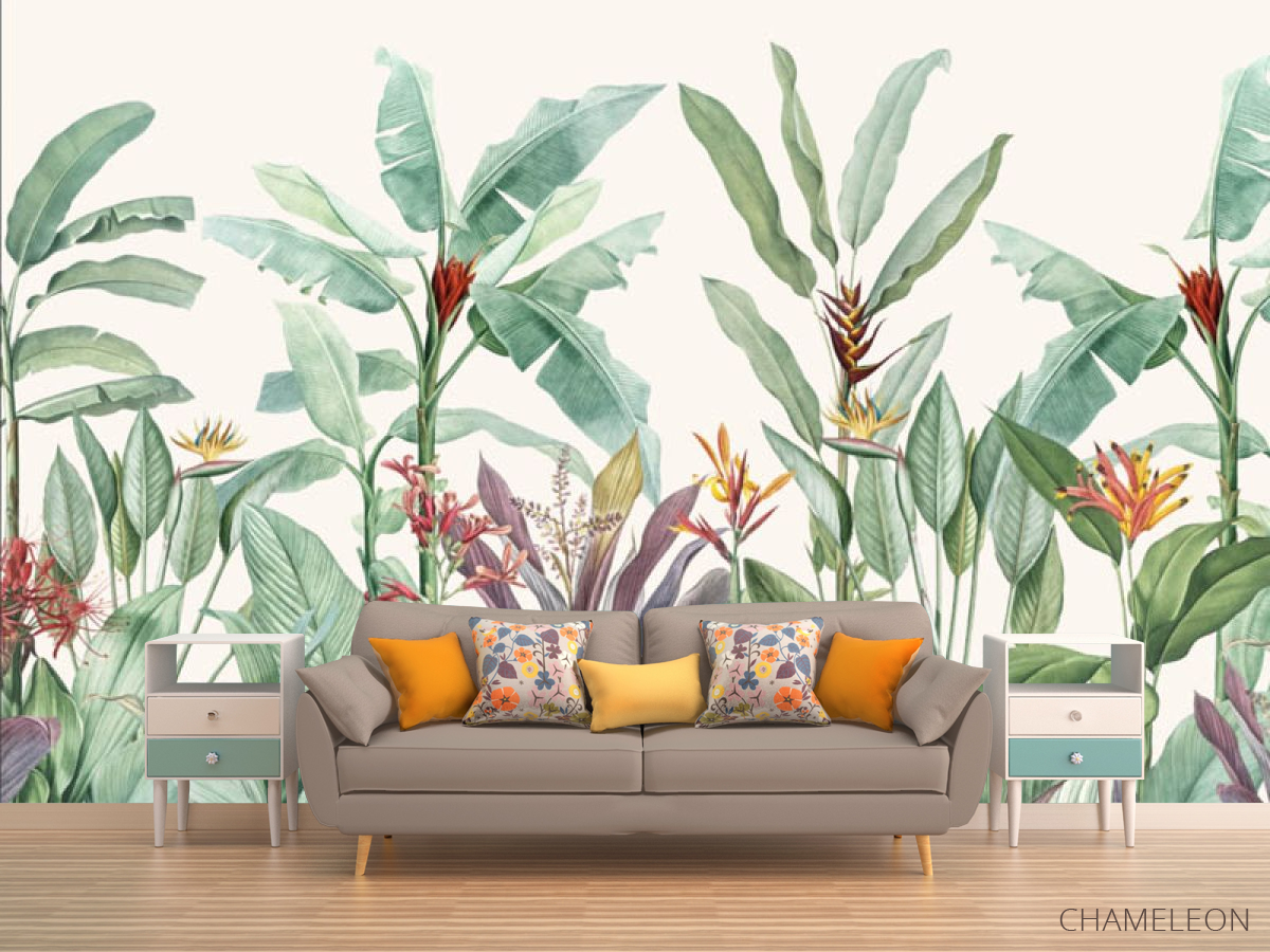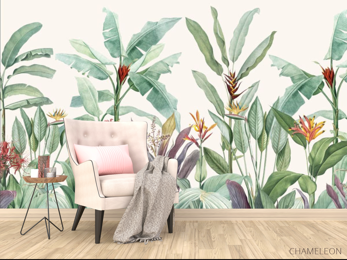 Современный интерьер в большинстве случаев исполнен из пастельных оттенков и порой хочется внести в них немного яркости. Фотообои тропические листья станут отличным решениям для тех, кто желает разбавить стиль комнаты и придать ему природной бодрости, красочности и создать атмосферу жарких стран. Такие обои чудесно впишутся в обстановку спальни, кухни или гостиной. Фотообои Тропические листья добавят в дом комфорта и уюта, а также будут радовать глаз на протяжении многих лет. Обои изготовлены из материалов высокого качества, не вызывают аллергию и не выгорают на солнце. Вы можете выбрать бумажную или флизилиновую основу, но вне зависимости от этого, клеить их абсолютно легко: достаточно лишь нанести клей на стену и прикрепить полотно.