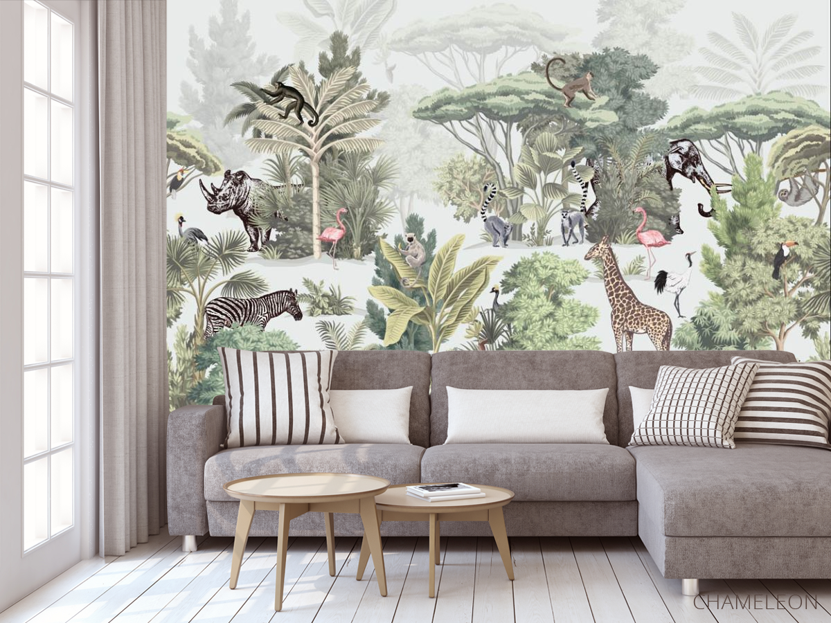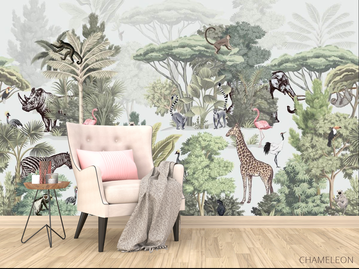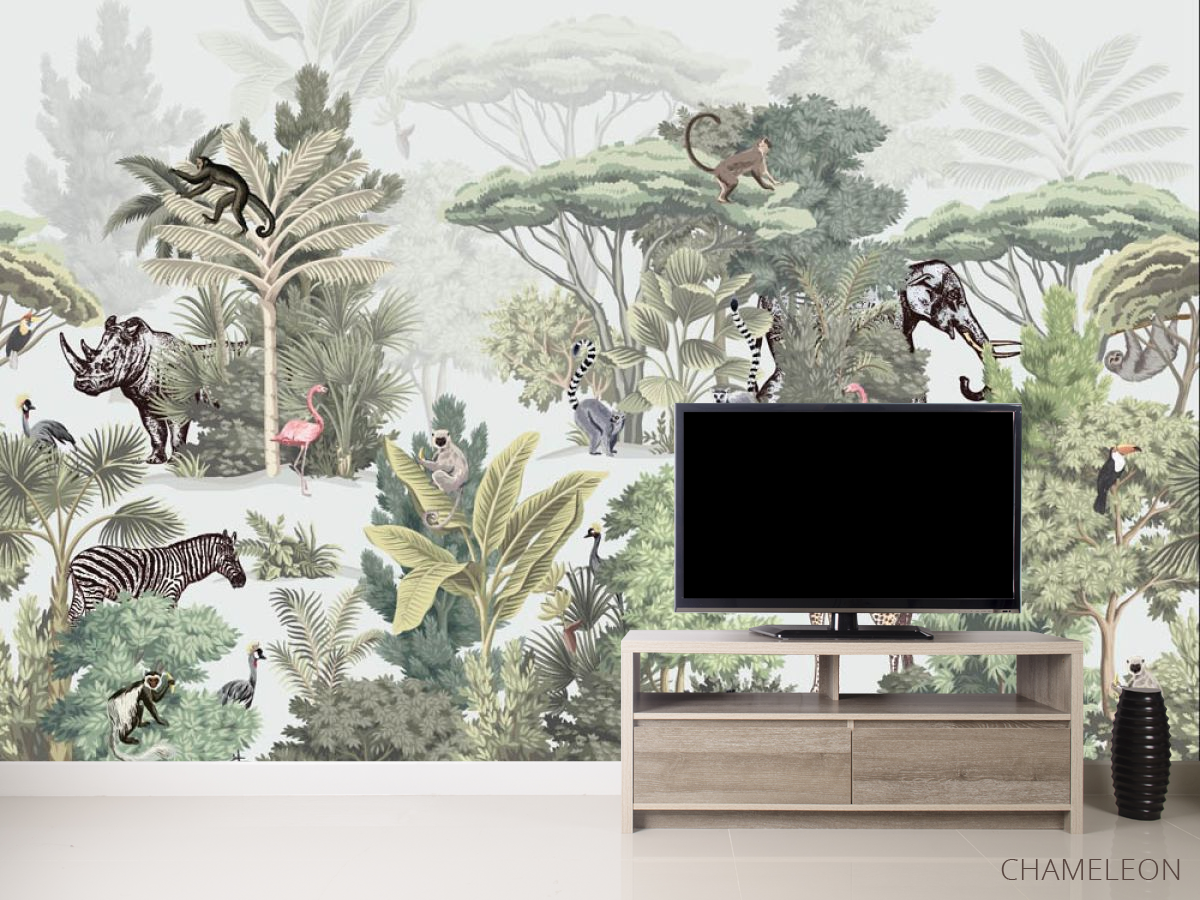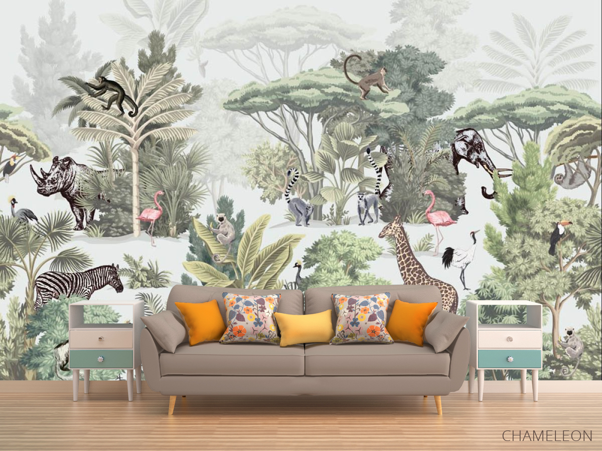 «Фотообои тропические листья и животные», (арт. 31526) - купить в интернет-магазине Chameleon