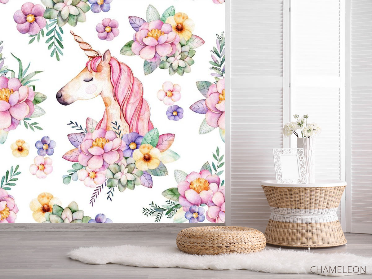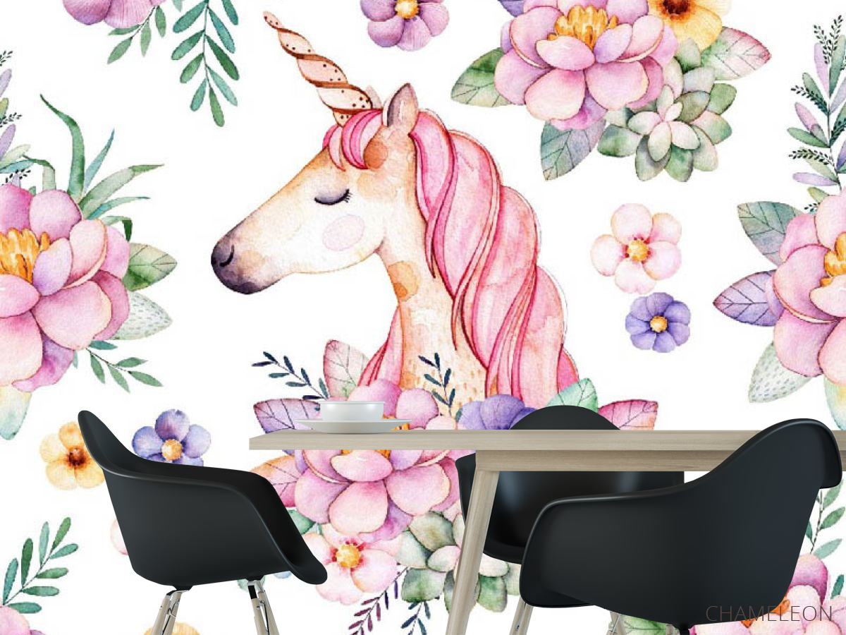 «Фотообои единорог и цветы», (арт. 31528) - купить в интернет-магазине Chameleon