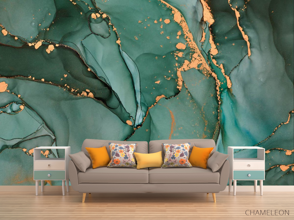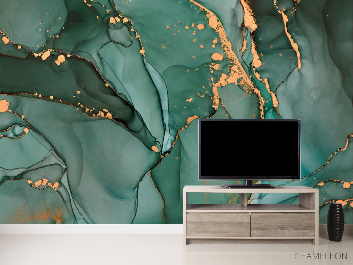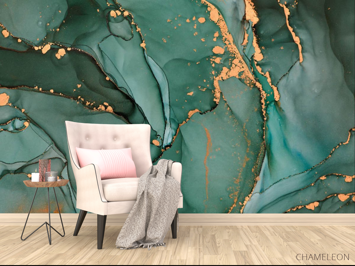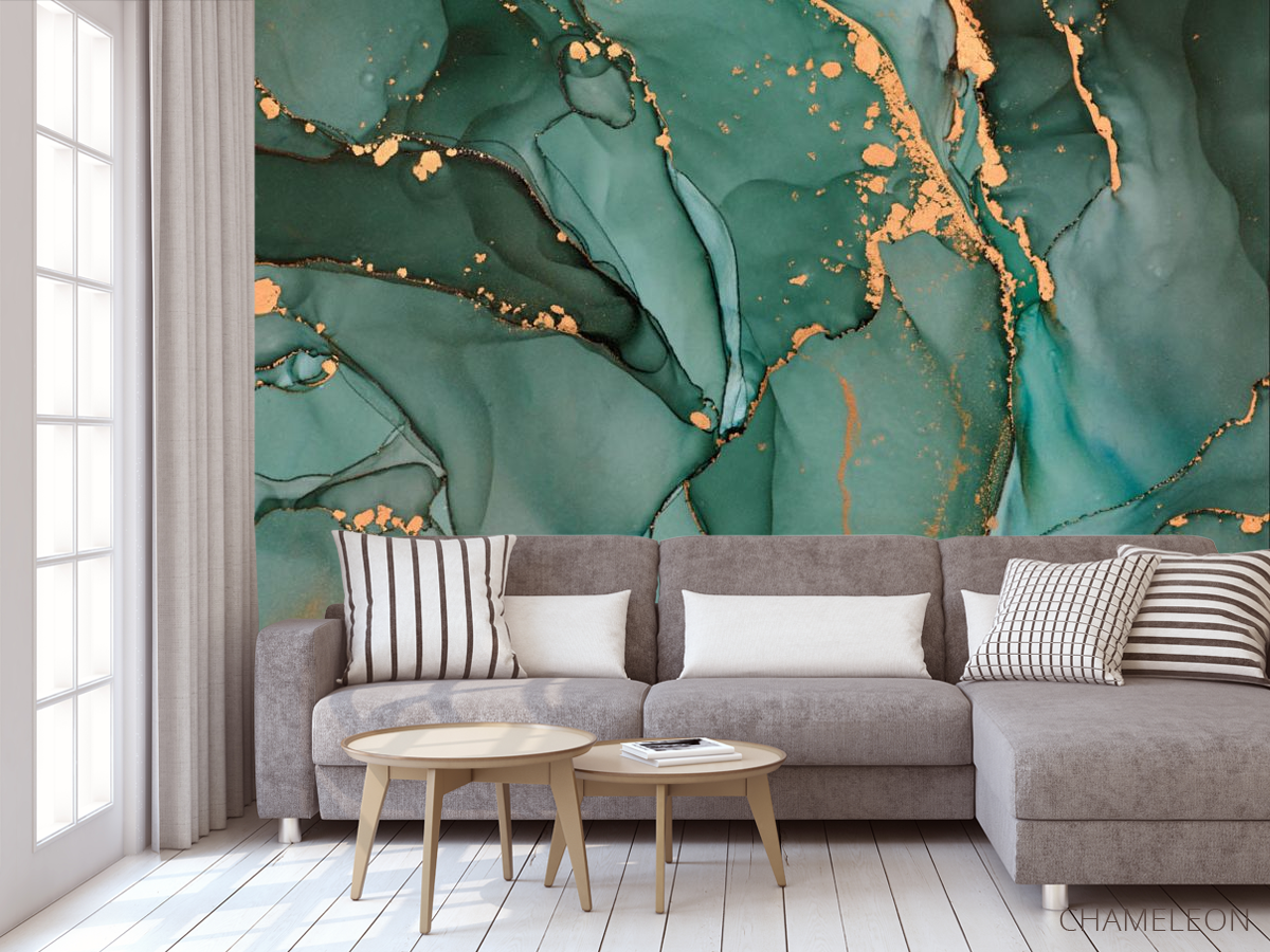 «Фотообои бирюзовый флюид с золотом», (арт. 31542) - купить в интернет-магазине Chameleon
