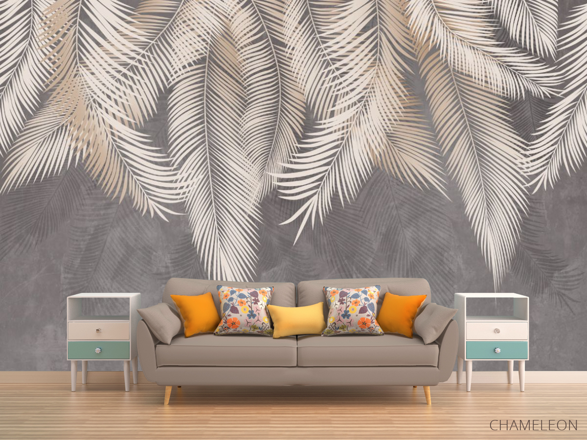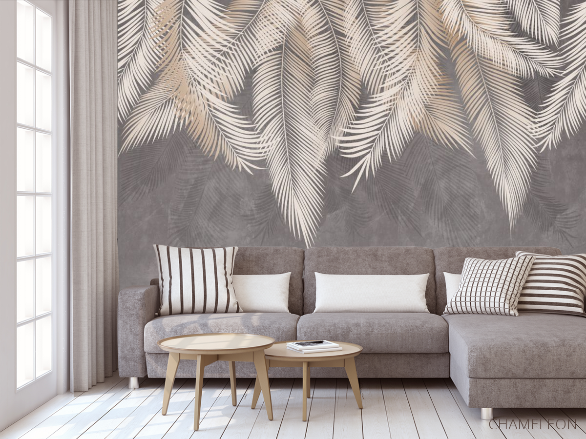 «Фотообои серые листья на стену», (арт. 31609) - купить в интернет-магазине Chameleon