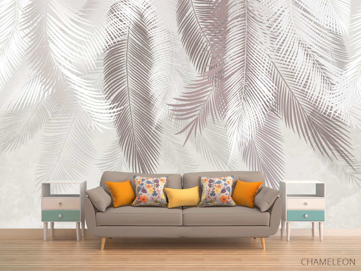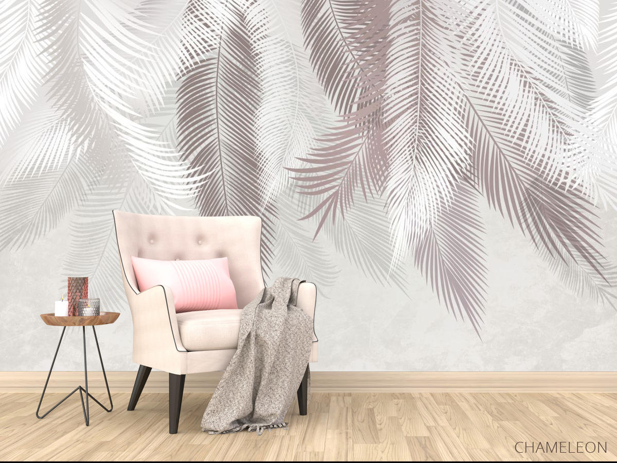«Фотообои серые листья на стену», (арт. 31644_1) - купить в интернет-магазине Chameleon
