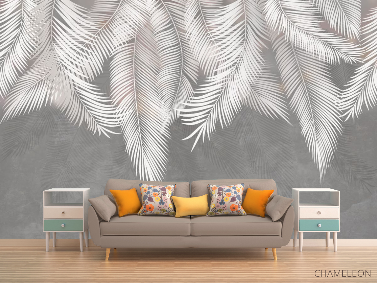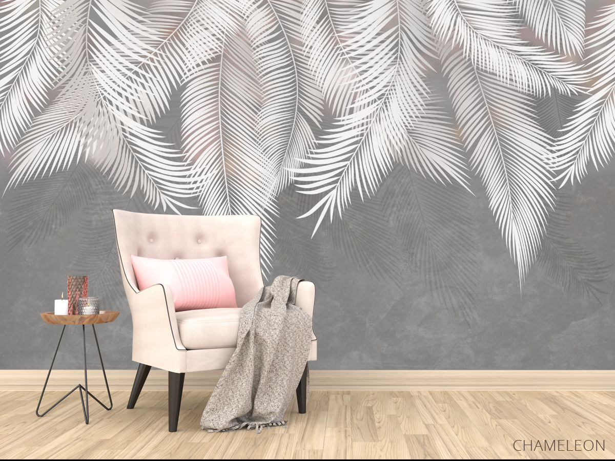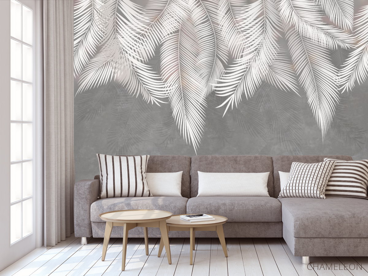 «Фотообои серые листья на стену», (арт. 31652) - купить в интернет-магазине Chameleon