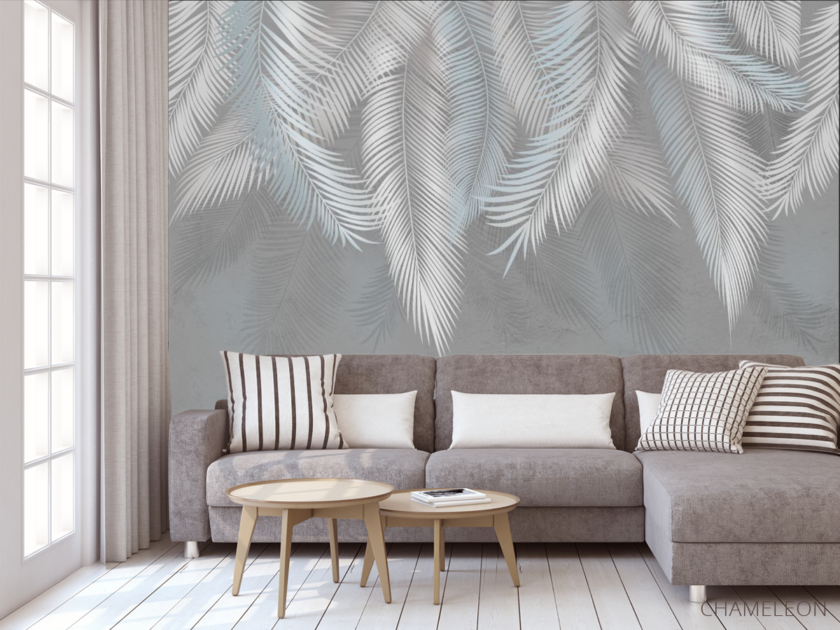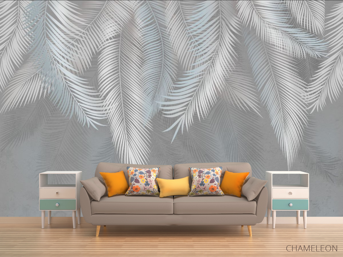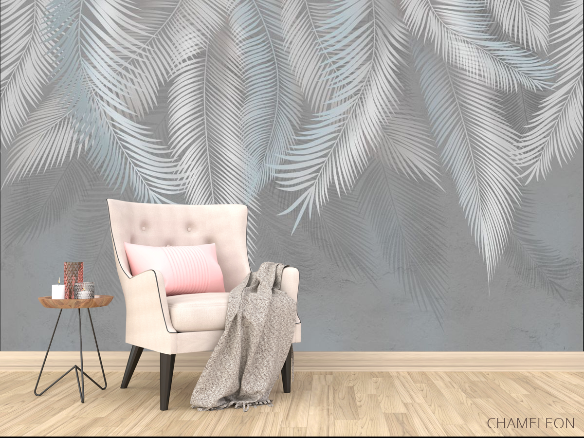 Фотообои серые листья на стену