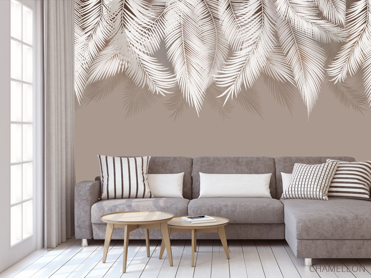 «Фотообои бежевые листья на стену», (арт. 31684) - купить в интернет-магазине Chameleon