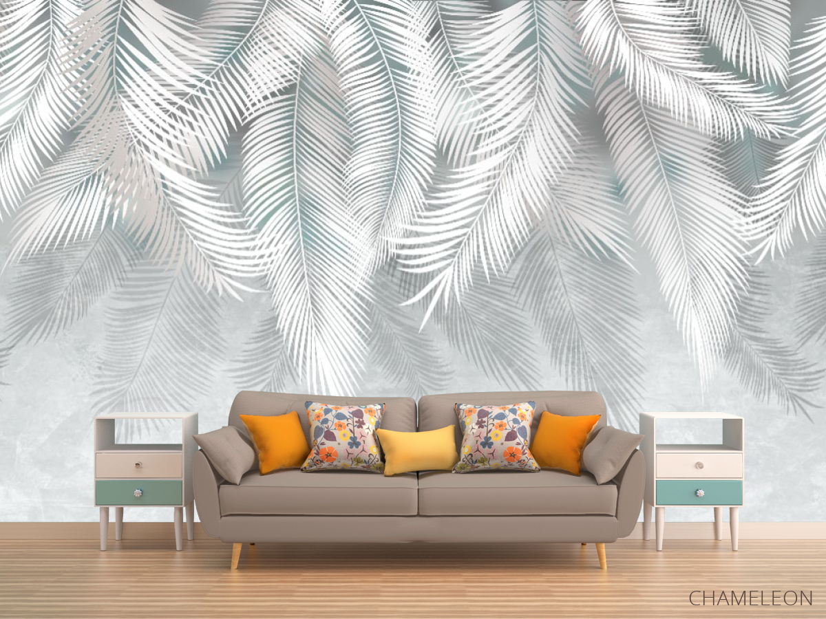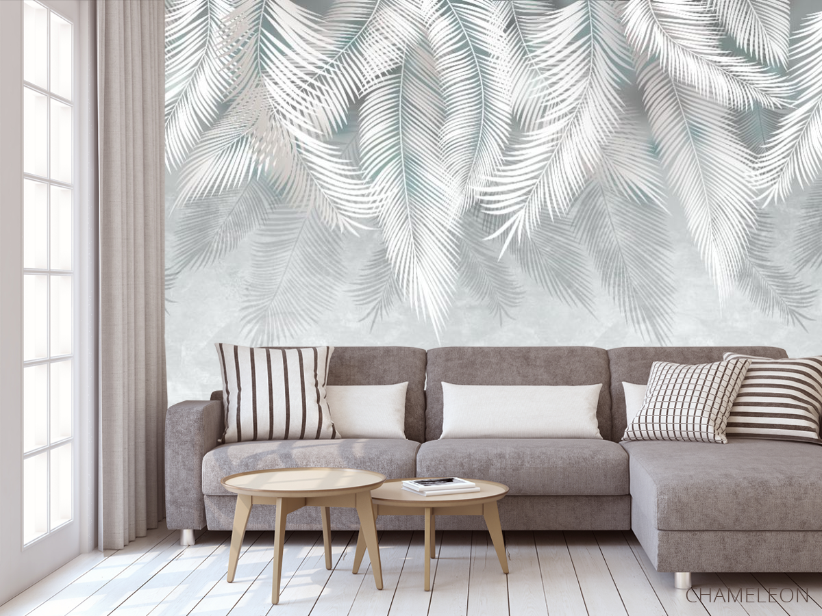 Фотообои серые листья на стену