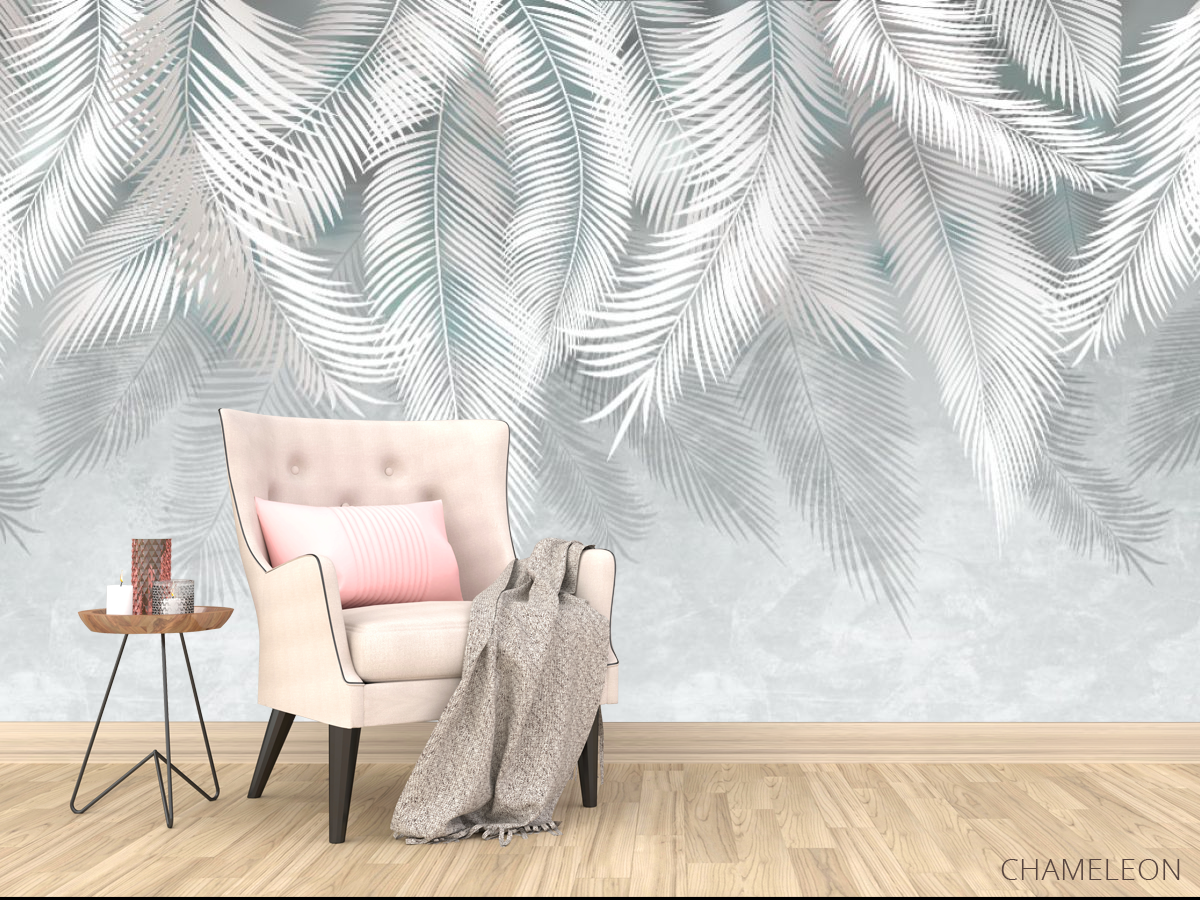 «Фотообои серые листья на стену», (арт. 31689) - купить в интернет-магазине Chameleon