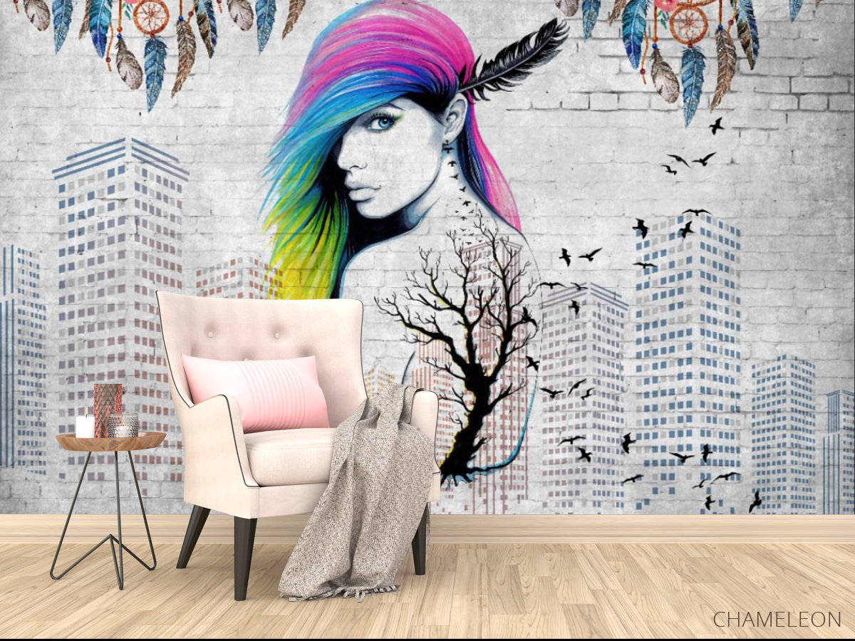 «Фотообои цветные волосы и высотки», (арт. 31777) - купить в интернет-магазине Chameleon