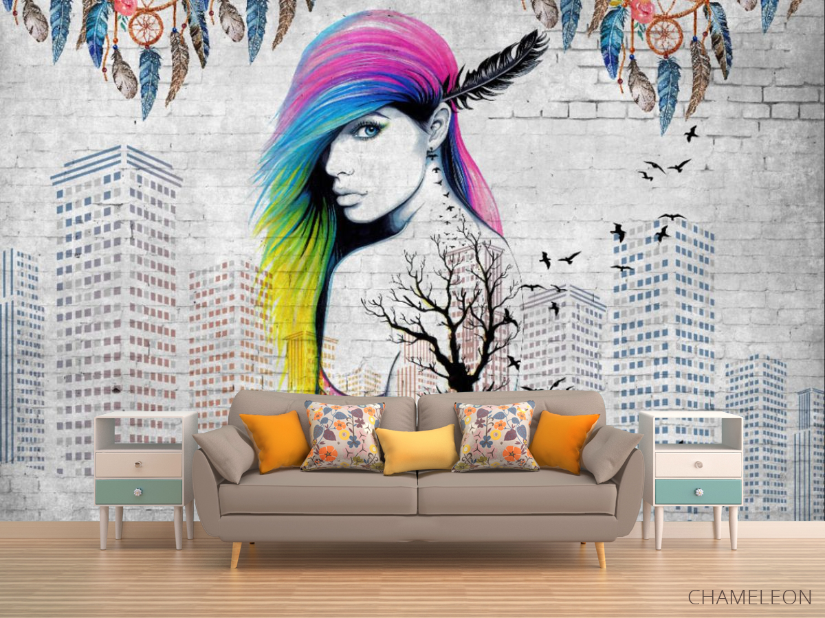Фотообои цветные волосы и высотки