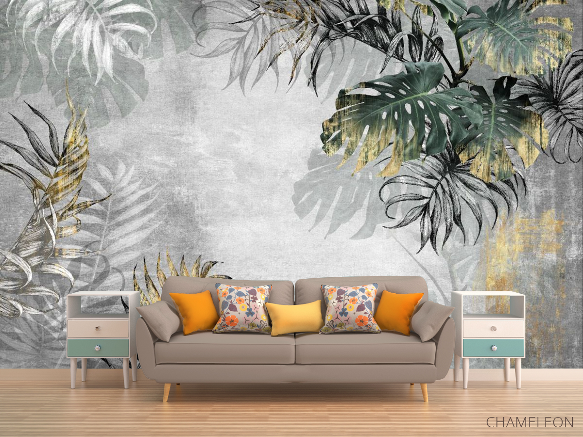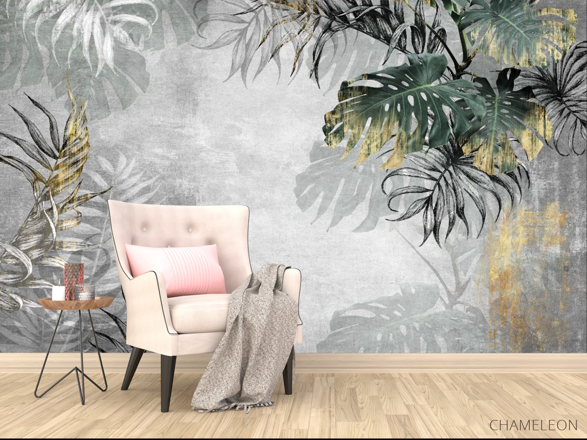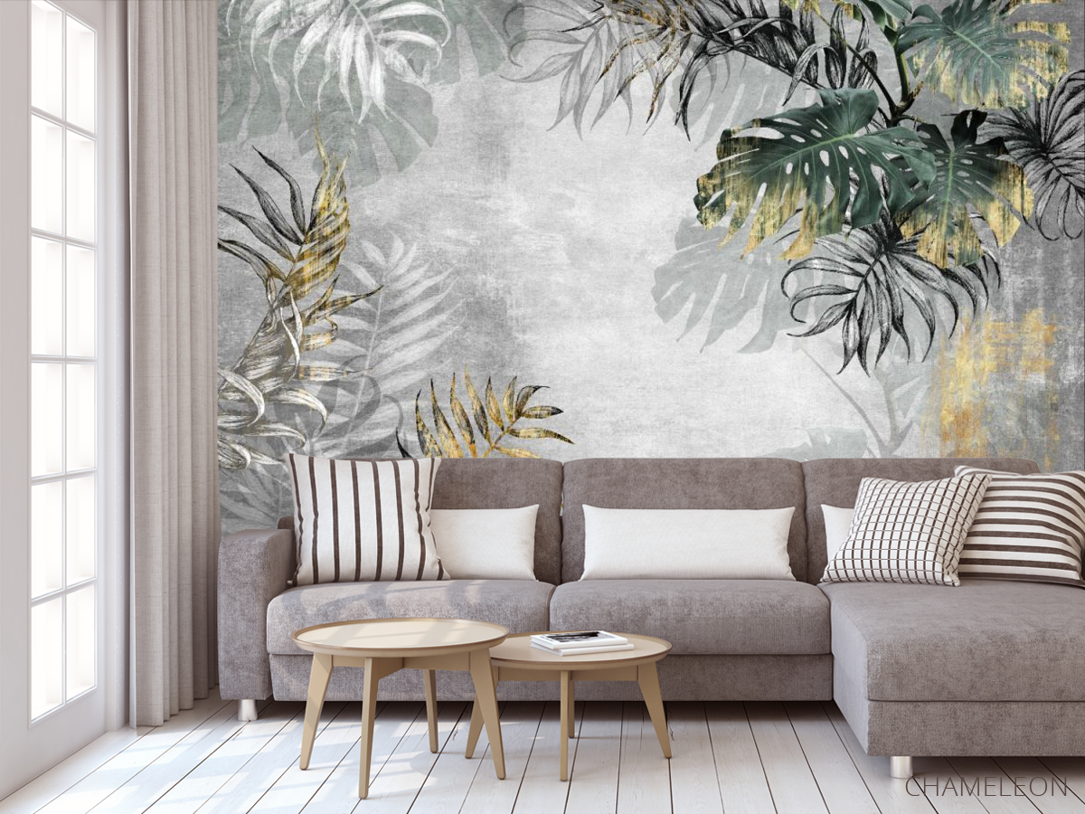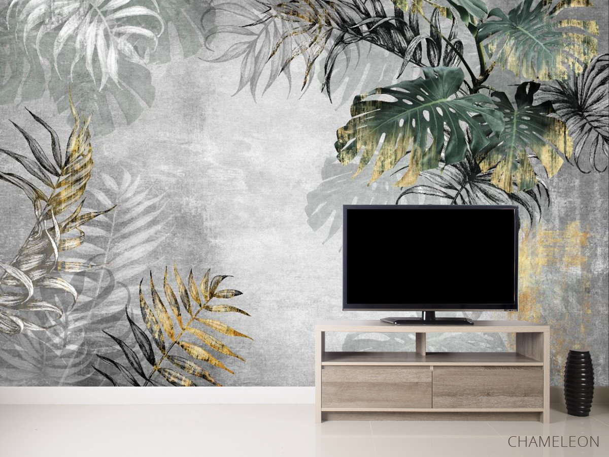 «Фотообои тропические листья с золотом», (арт. 31813g) - купить в интернет-магазине Chameleon