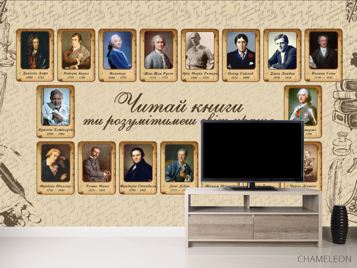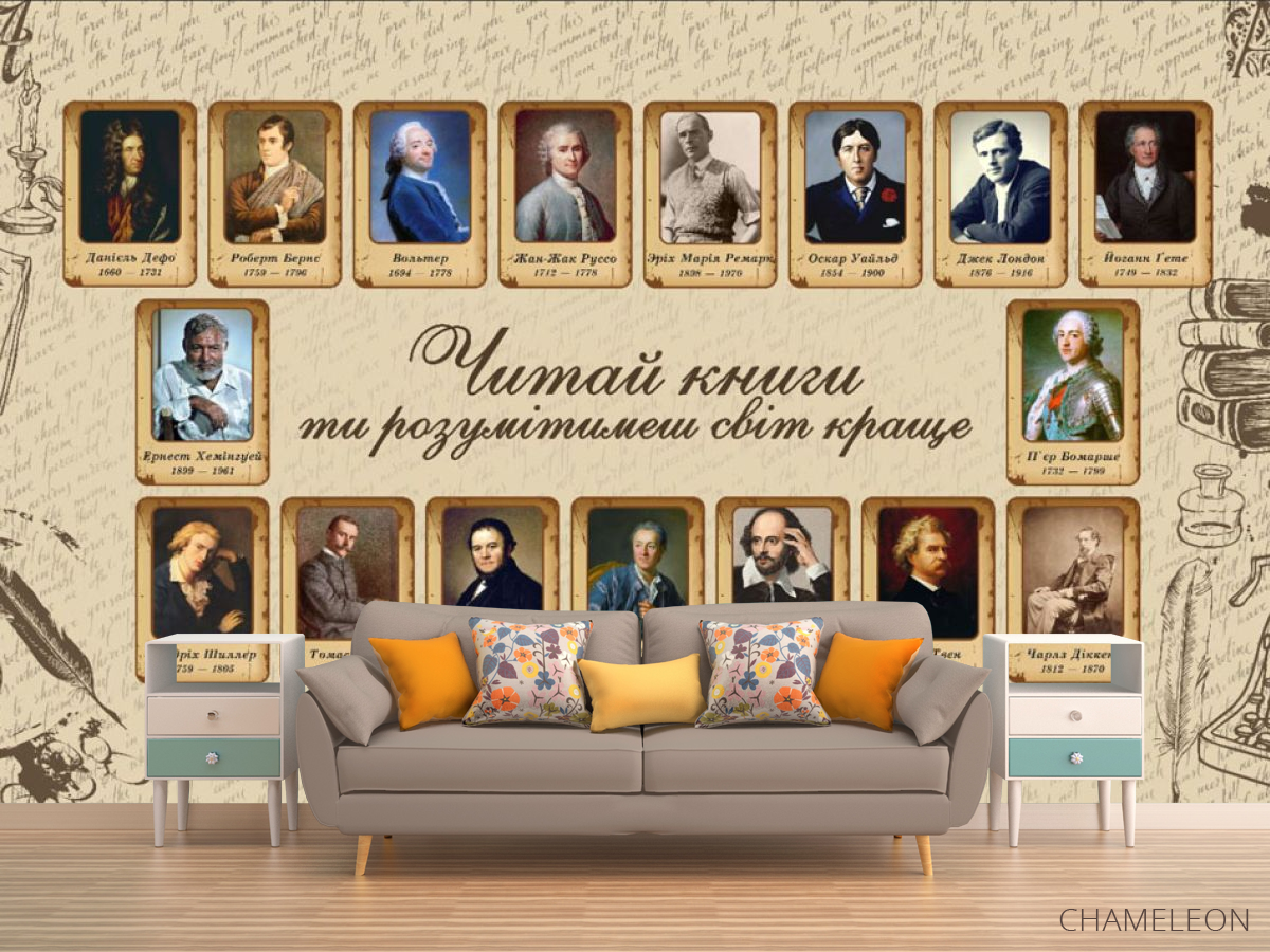 Времяпровождение в школе занимает весомую часть жизни и хочется, чтобы оно было комфортным и уютным. Фотообои для школы – отличный вариант украсить класс, коридор, столовую или библиотеку. Обширный выбор ярких изображений точно не оставит равнодушным. Географические карты, портреты писателей, математические формулы, таблица Менделеева – каждый найдет то, что подходит под стиль кабинета. Фотообои изготовлены из материалов высокого качества, которые не вызывают аллергию, не выделяют токсических веществ и абсолютно безопасны. Рисунок нанесен очень четко и детально, а благодаря качественным краскам, он не выгорает и остается в первозданном виде на протяжении нескольких лет.