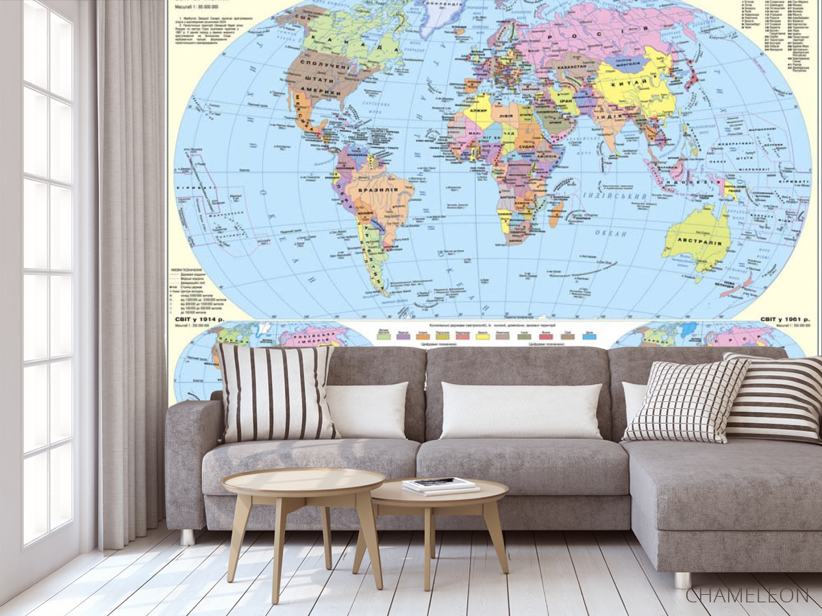 Времяпровождение в школе занимает весомую часть жизни и хочется, чтобы оно было комфортным и уютным. Фотообои для школы – отличный вариант украсить класс, коридор, столовую или библиотеку. Обширный выбор ярких изображений точно не оставит равнодушным. Географические карты, портреты писателей, математические формулы, таблица Менделеева – каждый найдет то, что подходит под стиль кабинета. Фотообои изготовлены из материалов высокого качества, которые не вызывают аллергию, не выделяют токсических веществ и абсолютно безопасны. Рисунок нанесен очень четко и детально, а благодаря качественным краскам, он не выгорает и остается в первозданном виде на протяжении нескольких лет.