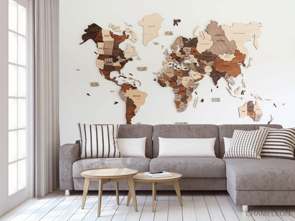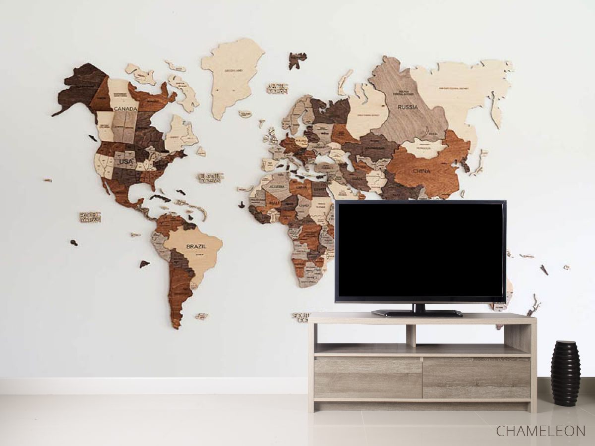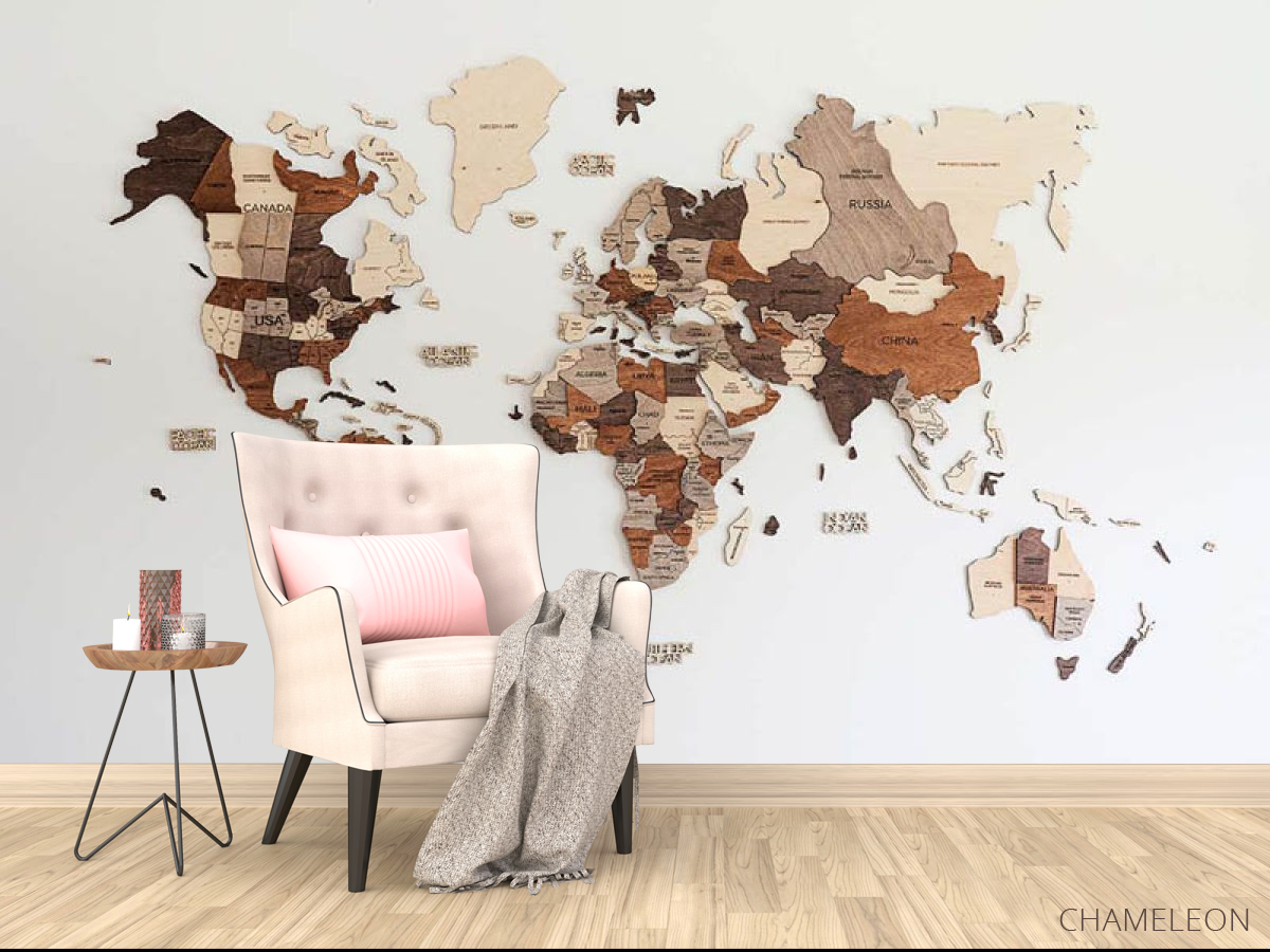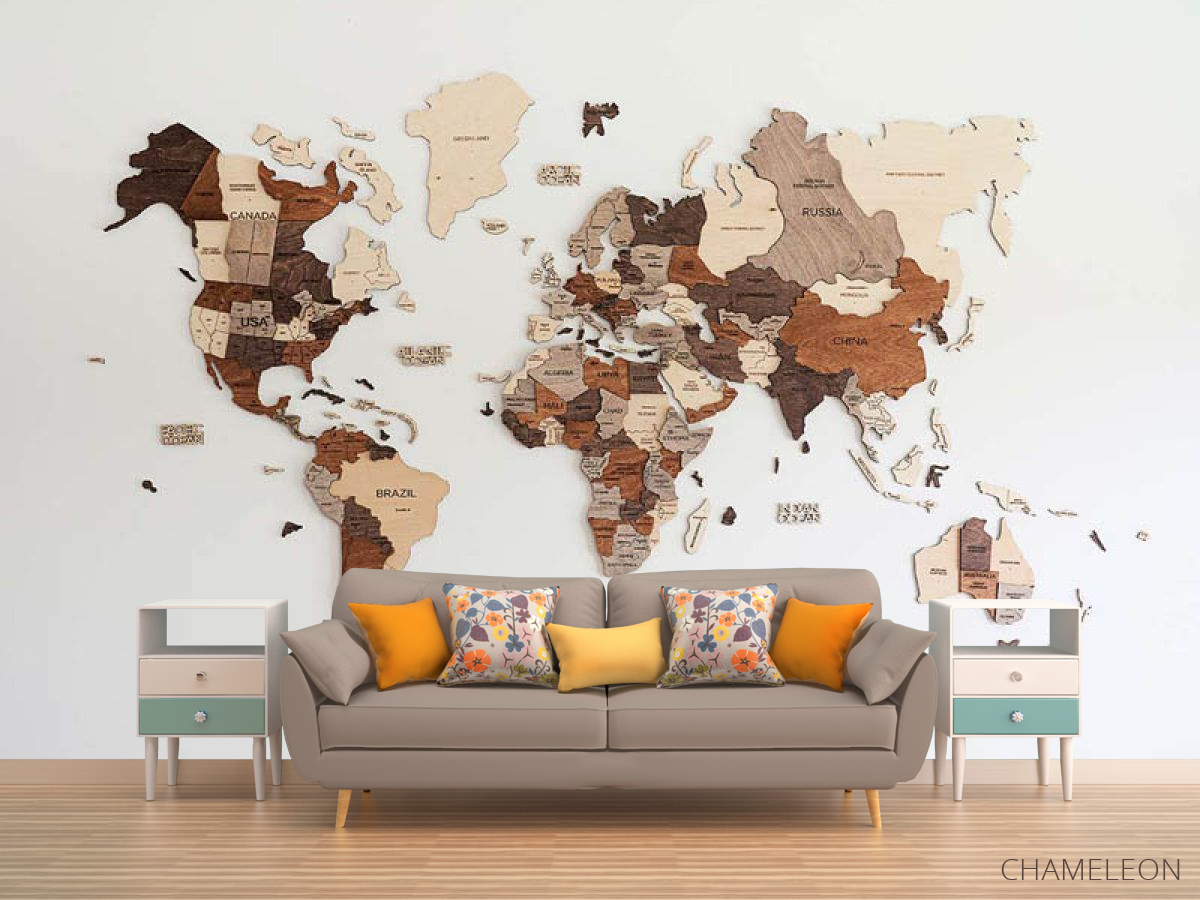 Фотообои карта мира являются очень хорошим выбором как для дома (в гостиную, рабочий кабинет или кухню), так и для других зданий (в школу, ресторан или салон красоты). Они выглядят роскошно, имеют стильный дизайн и отлично подходят под любое оформление комнаты. Современные фотообои на стену производятся из надежного материала, который не портится и не царапается. Изображение - это полностью безопасная краска, которая не вызывает аллергии, а также остается красивым в течение многих лет. Вы можете уверенно использовать обои, которые украсят любое помещение. Купить стильные и оригинальные фотообои с картой мира можно в интернет-магазине Chameleons.