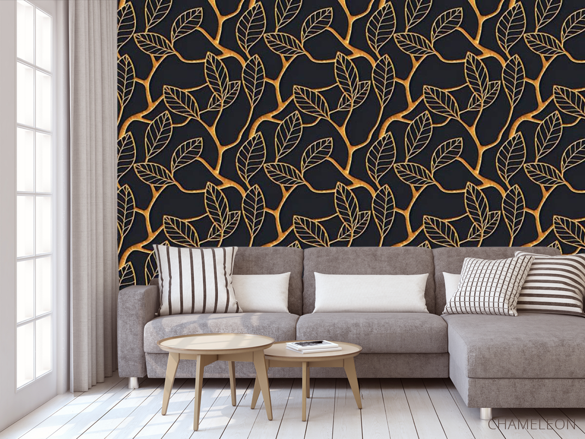 «Фотообои Золотые листья 3д», (арт. 32512) - купить в интернет-магазине Chameleon