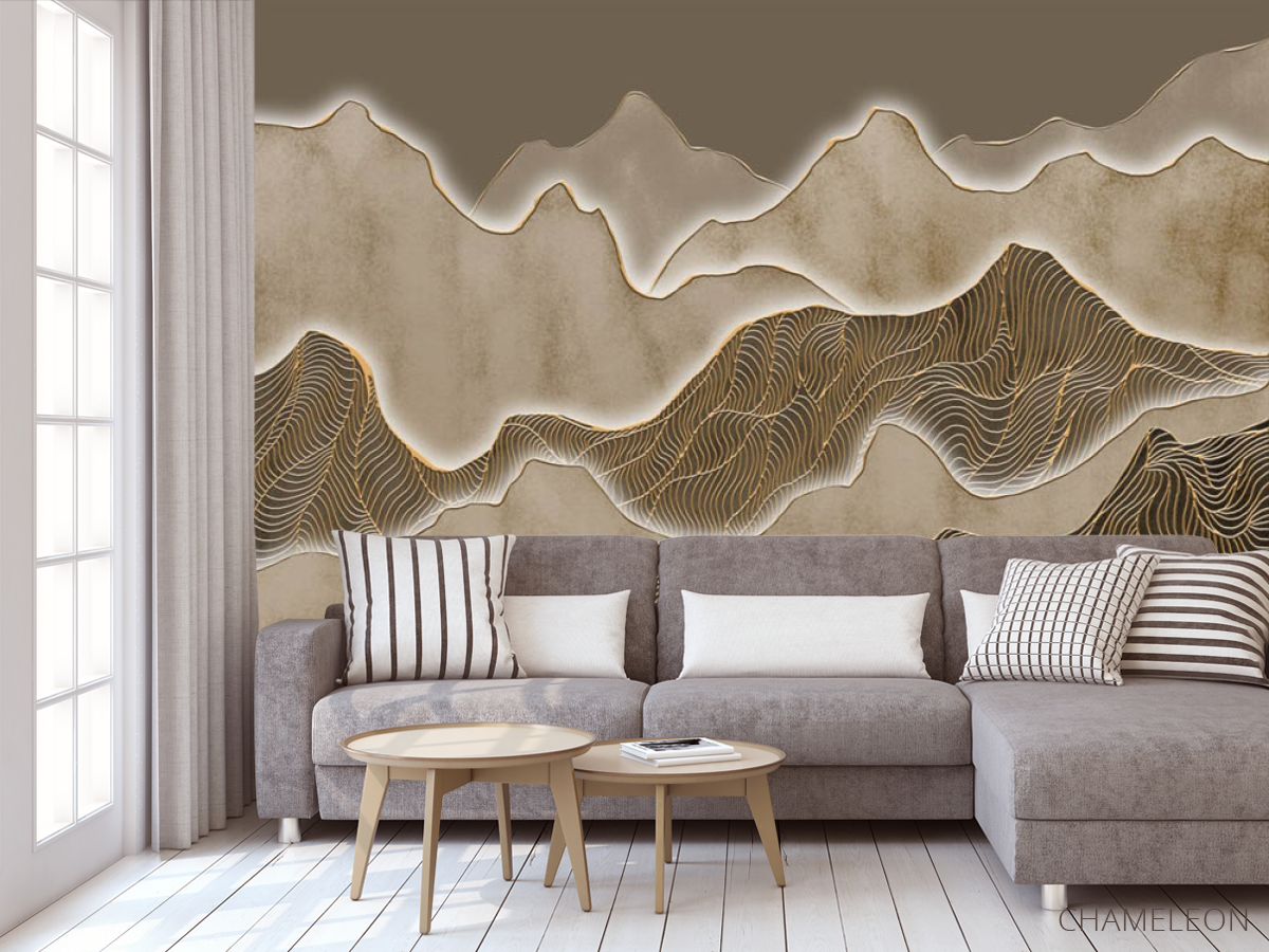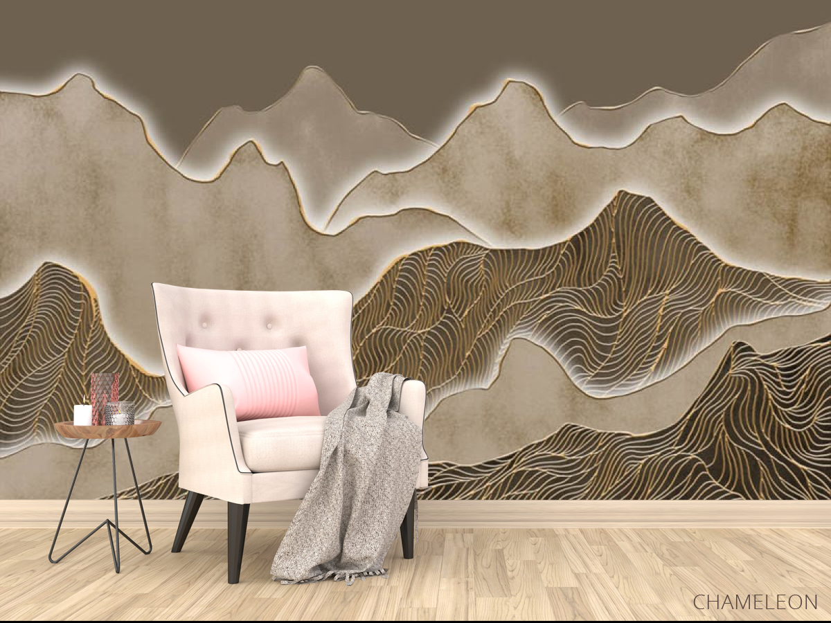 «Фотообои Золотые абстрактные горы», (арт. 32937) - купить в интернет-магазине Chameleon