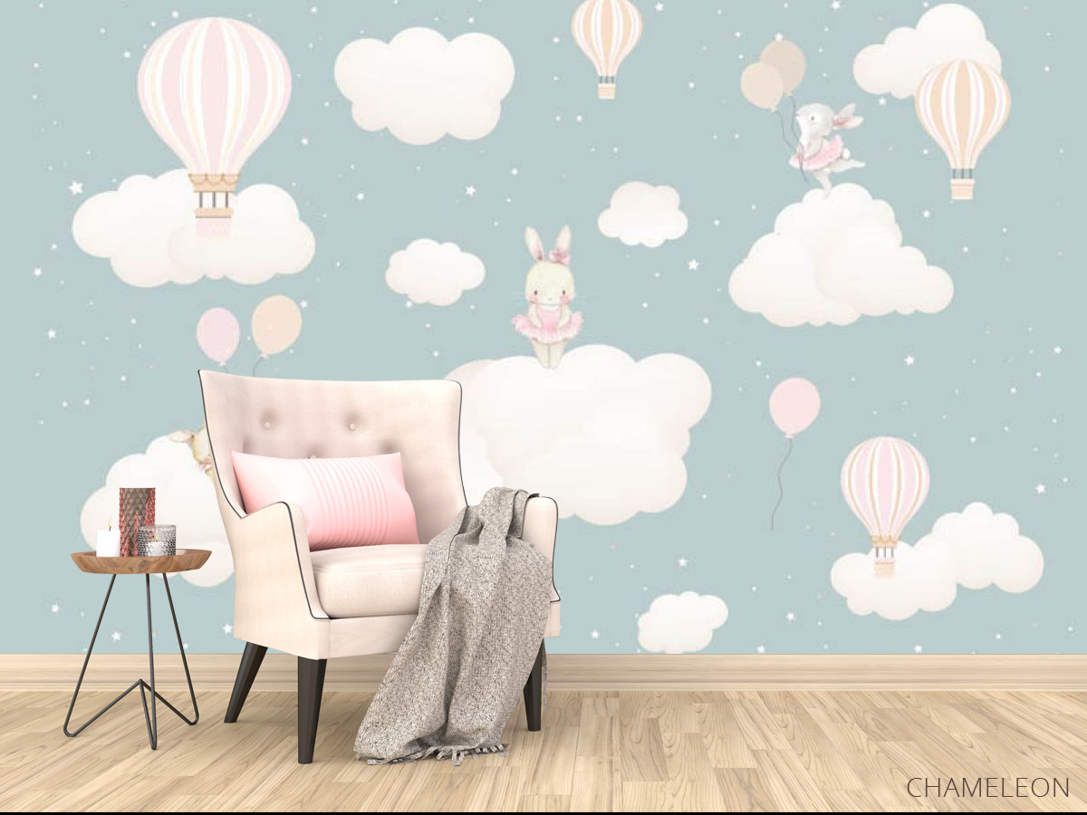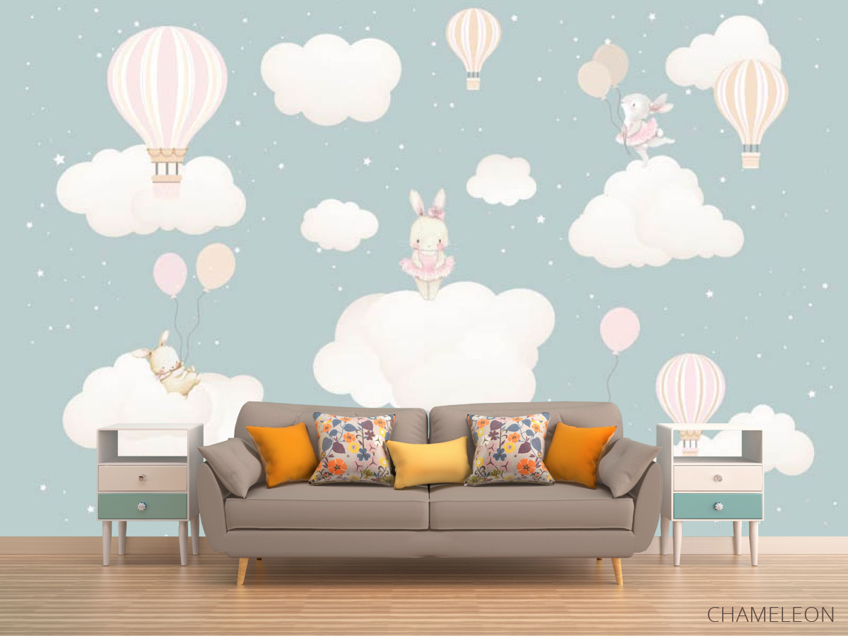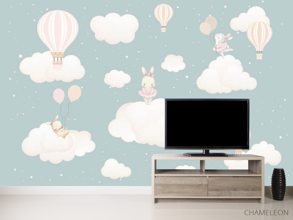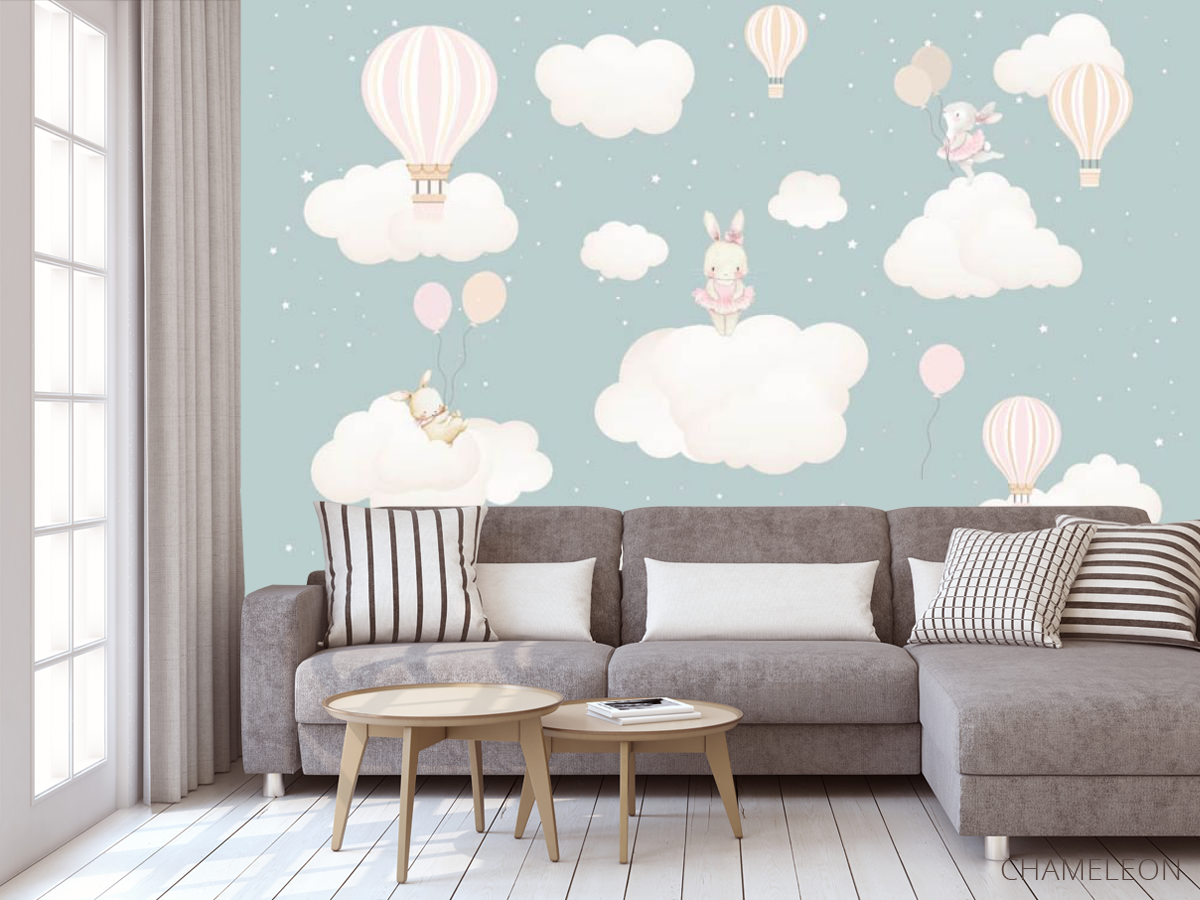 «Фотообои Зайчата на тучках для мальчиков», (арт. 33006) - купить в интернет-магазине Chameleon