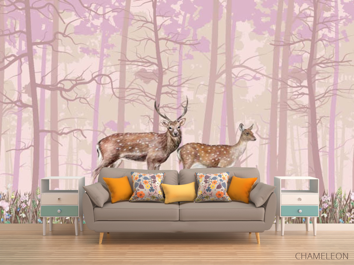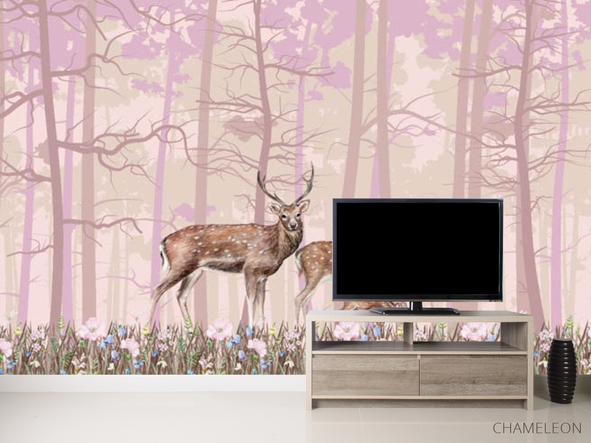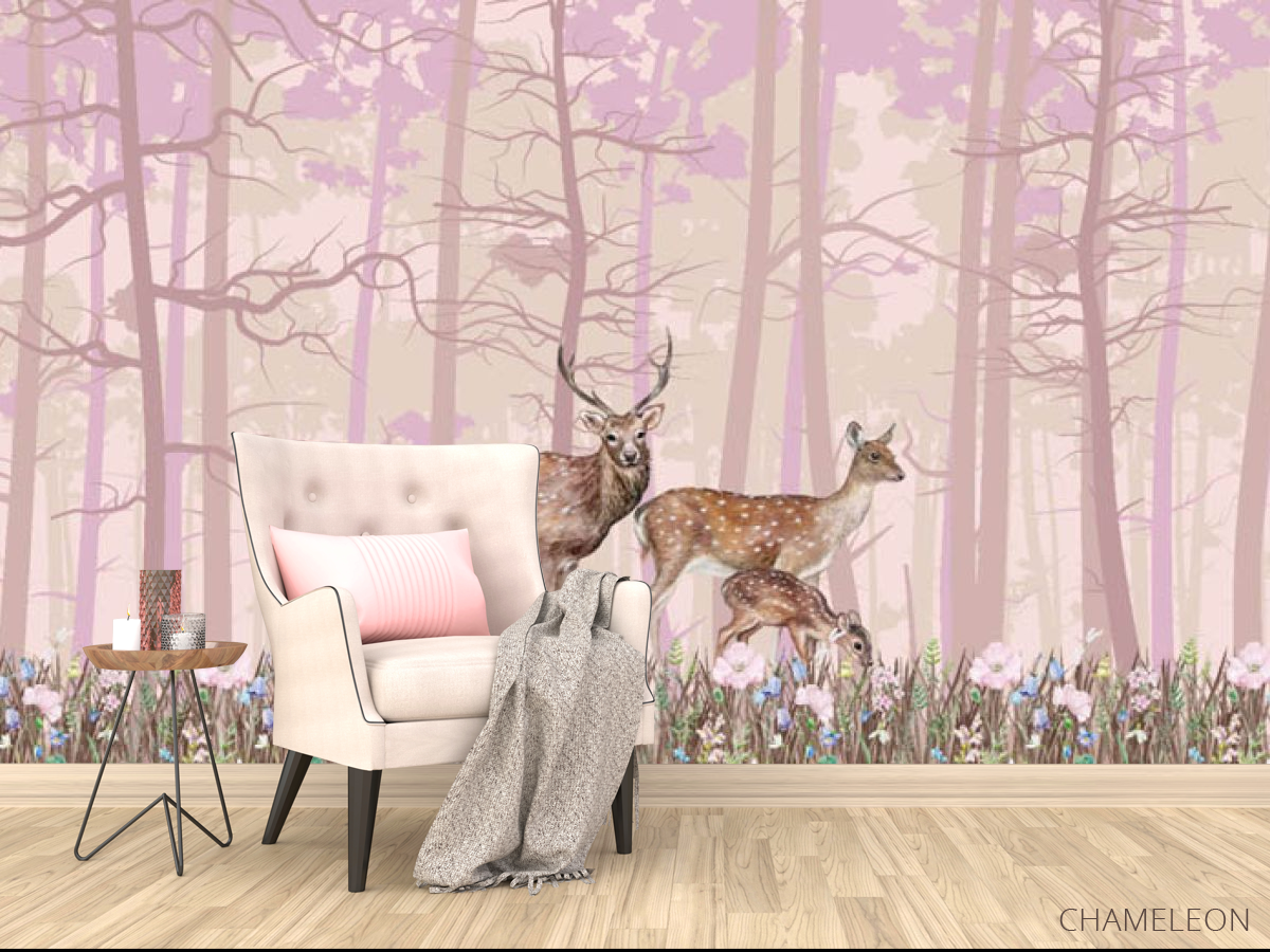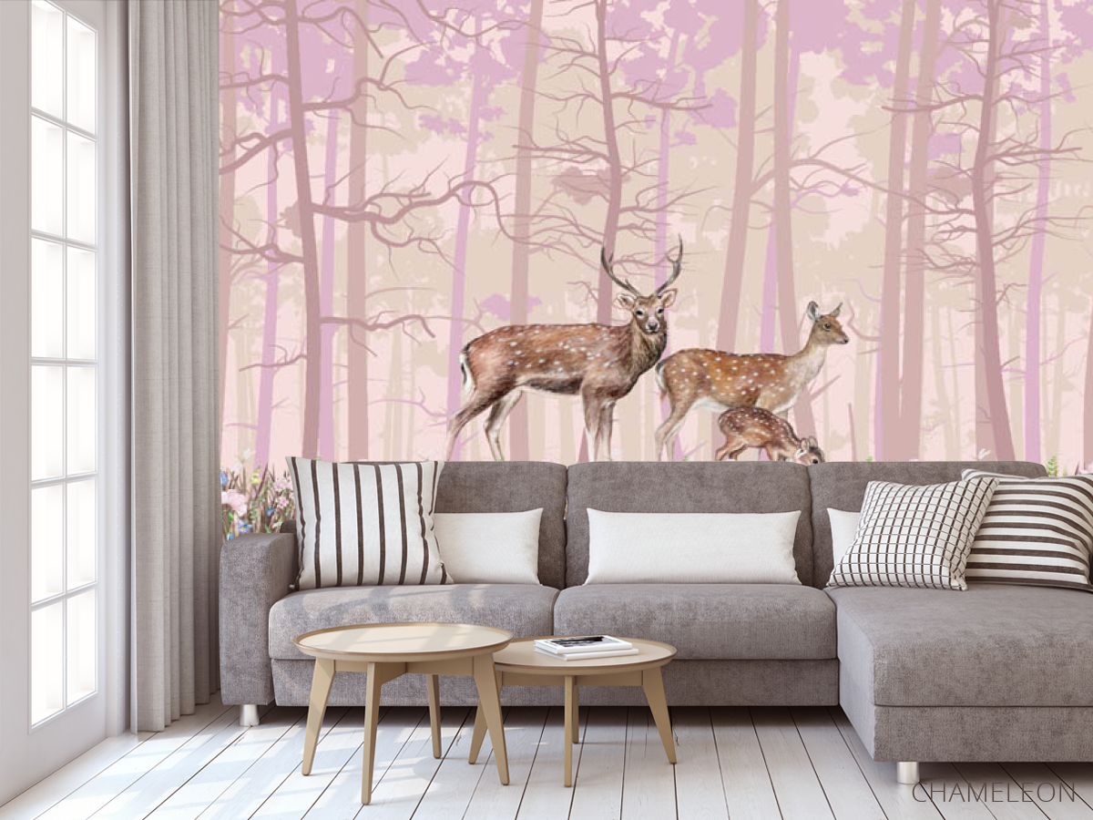 «Фотообои Олени в розовом лесу», (арт. 33021) - купить в интернет-магазине Chameleon