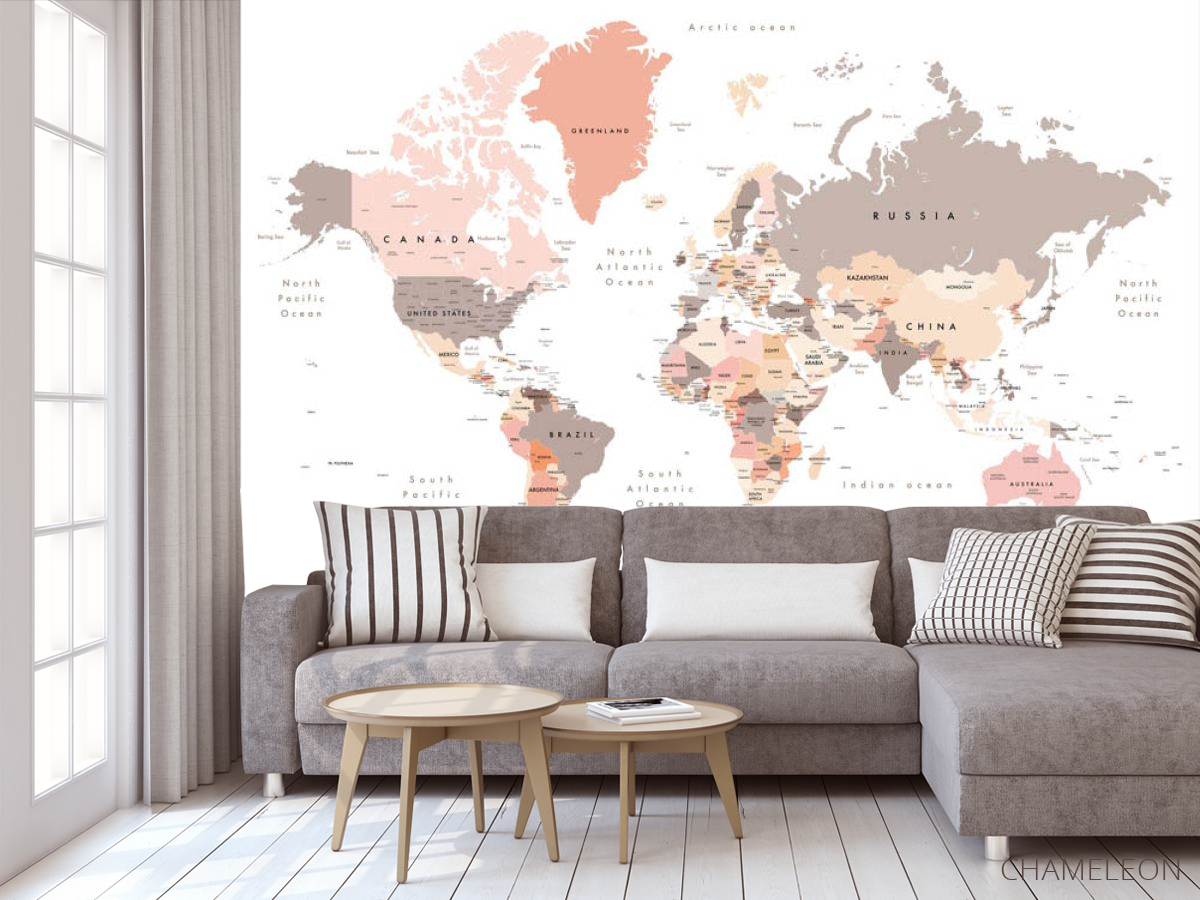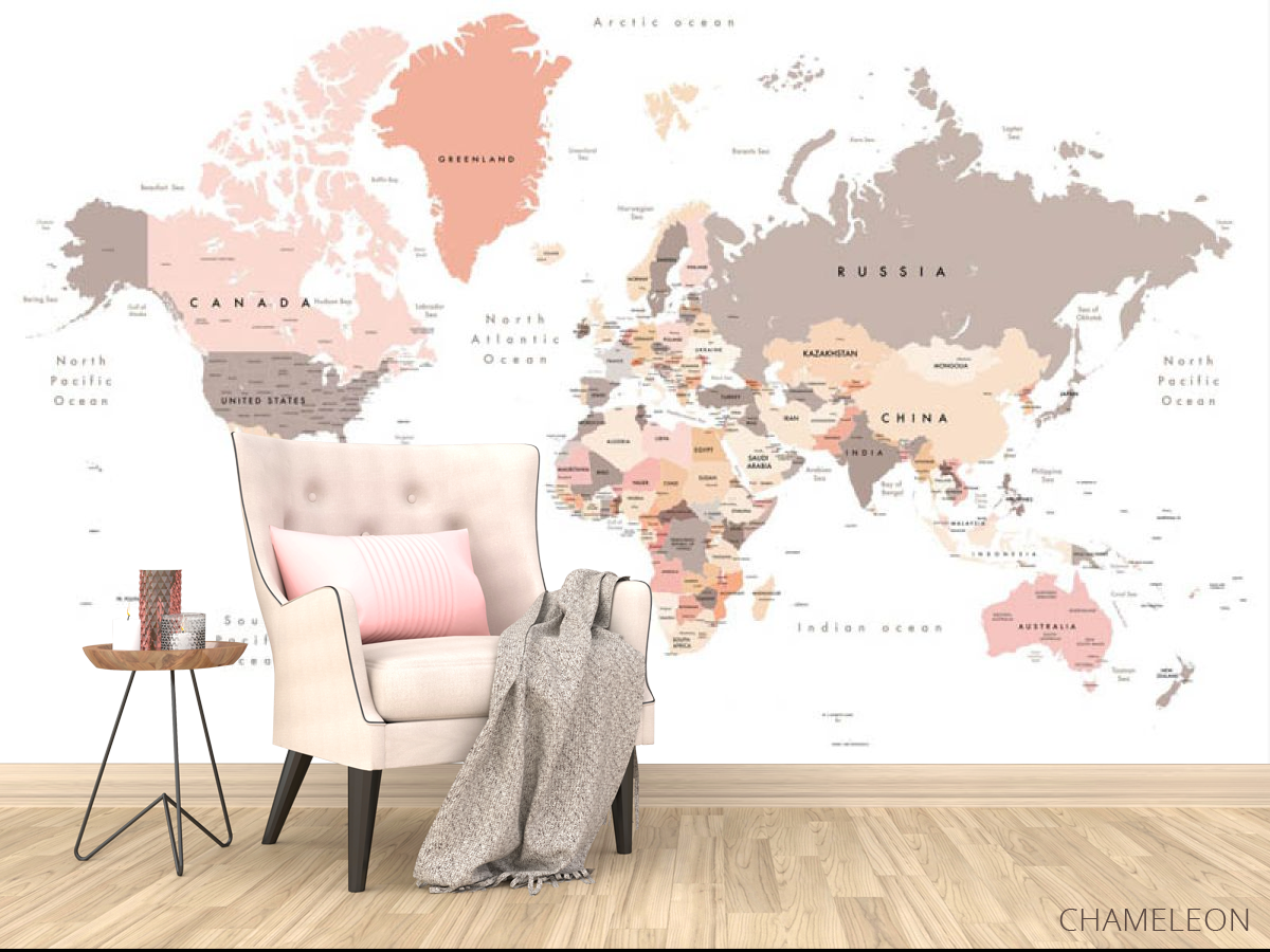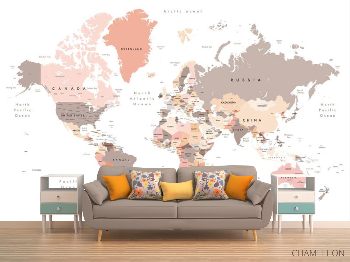Фотообои карта мира являются очень хорошим выбором как для дома (в гостиную, рабочий кабинет или кухню), так и для других зданий (в школу, ресторан или салон красоты). Они выглядят роскошно, имеют стильный дизайн и отлично подходят под любое оформление комнаты. Современные фотообои на стену производятся из надежного материала, который не портится и не царапается. Изображение - это полностью безопасная краска, которая не вызывает аллергии, а также остается красивым в течение многих лет. Вы можете уверенно использовать обои, которые украсят любое помещение. Купить стильные и оригинальные фотообои с картой мира можно в интернет-магазине Chameleons.