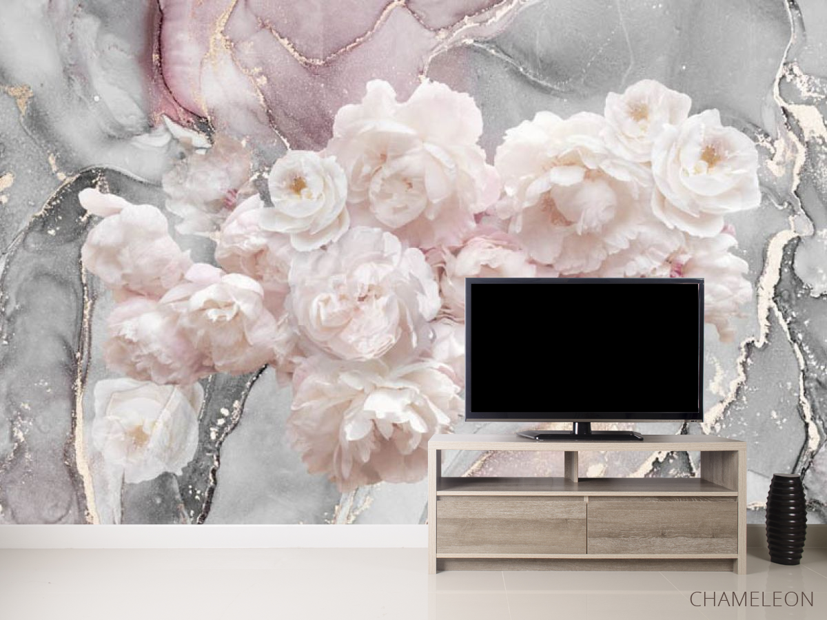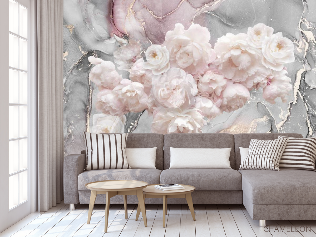 Фотообои Пионы на фоне флюида
