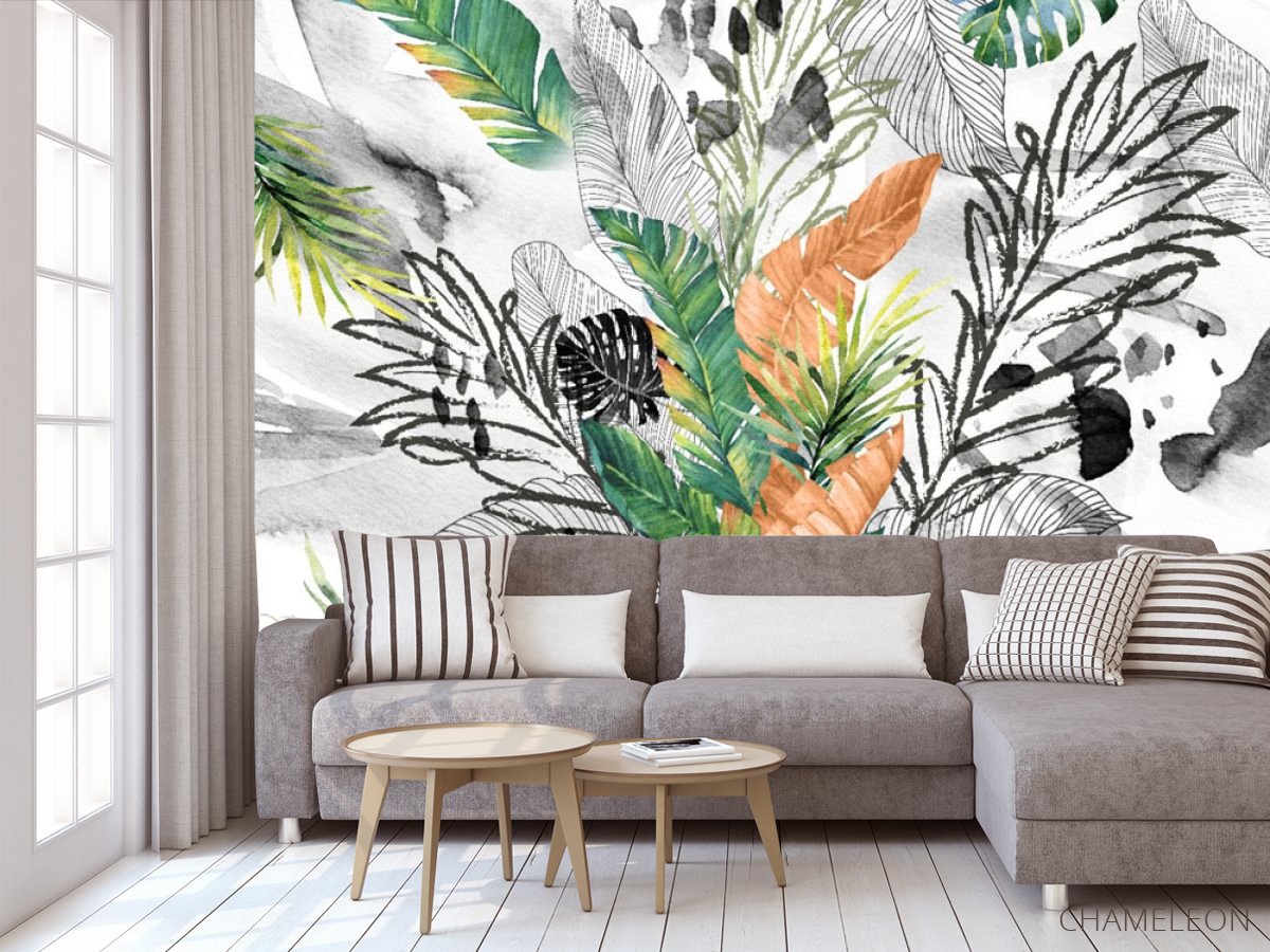 Современный интерьер в большинстве случаев исполнен из пастельных оттенков и порой хочется внести в них немного яркости. Фотообои тропические листья станут отличным решениям для тех, кто желает разбавить стиль комнаты и придать ему природной бодрости, красочности и создать атмосферу жарких стран. Такие обои чудесно впишутся в обстановку спальни, кухни или гостиной. Фотообои Тропические листья добавят в дом комфорта и уюта, а также будут радовать глаз на протяжении многих лет. Обои изготовлены из материалов высокого качества, не вызывают аллергию и не выгорают на солнце. Вы можете выбрать бумажную или флизилиновую основу, но вне зависимости от этого, клеить их абсолютно легко: достаточно лишь нанести клей на стену и прикрепить полотно.