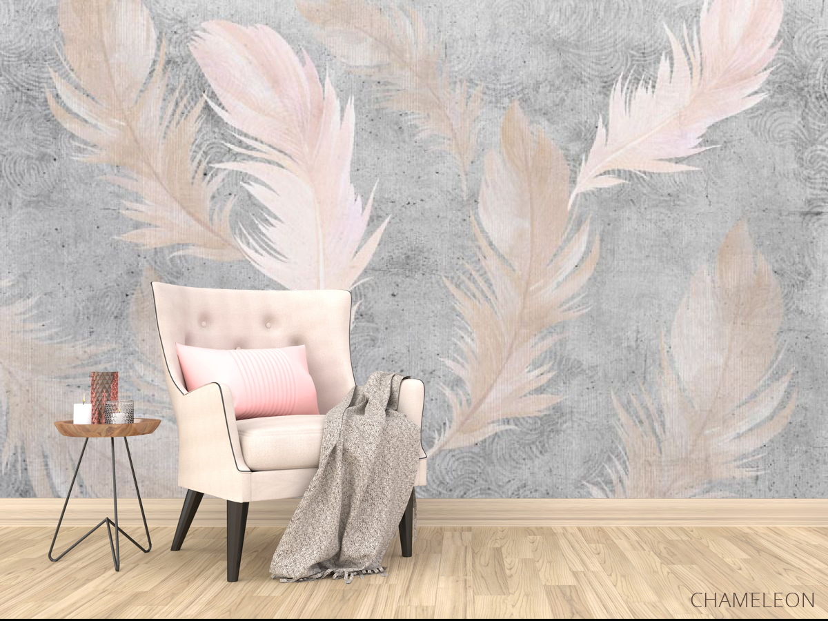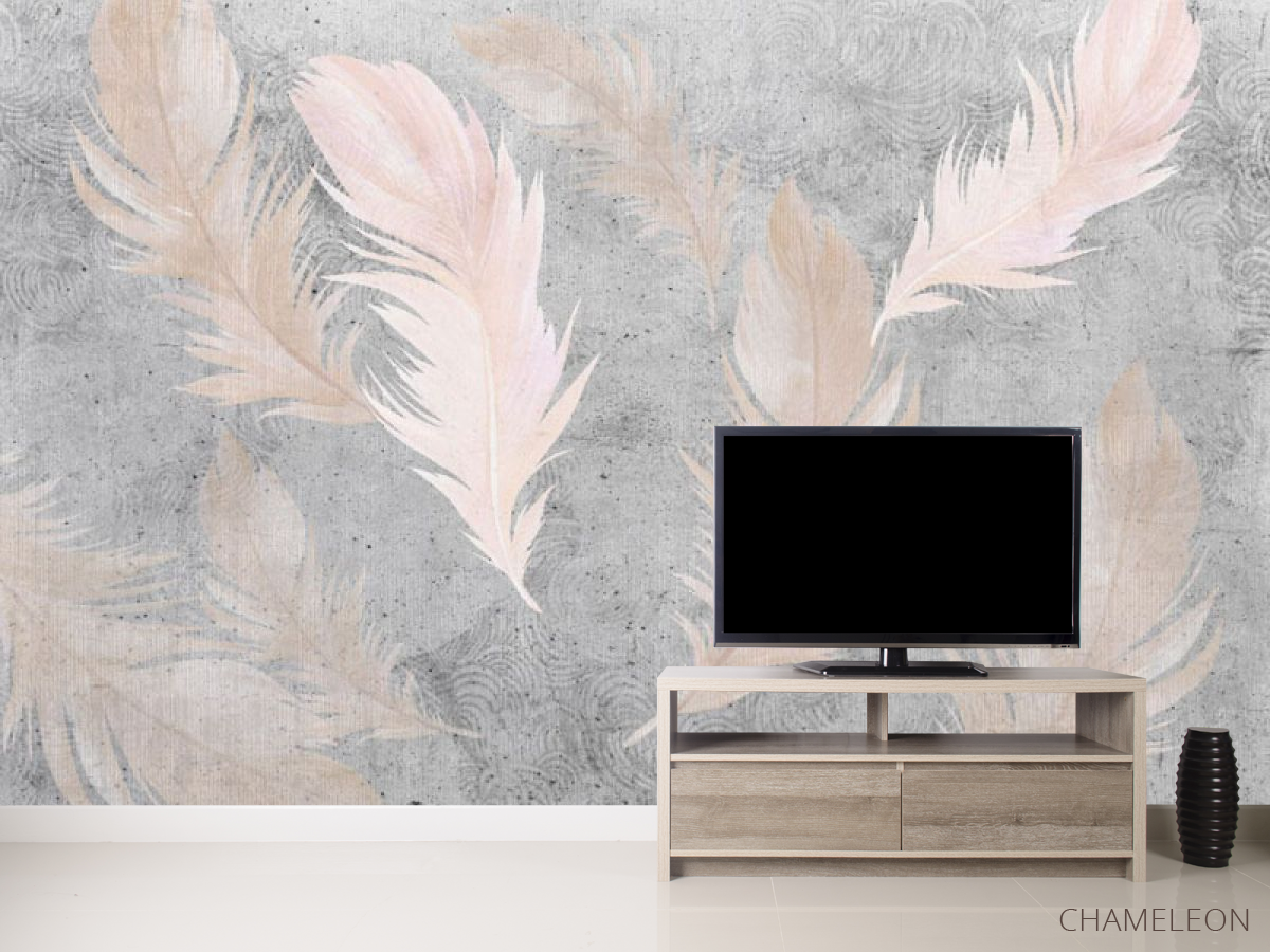 Фотообои Розовые перья на фоне бетона.