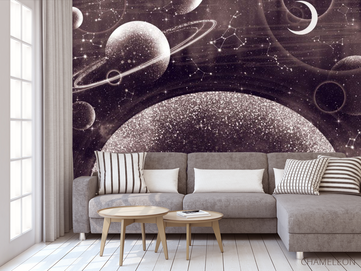 Что же еще настолько идеально будет смотреться как в спальне, так и гостиной или детской комнате? Конечно же - модные фотообои с изображением космоса. Они сочетаются с любым стилем интерьера, но лучше всего подходят под современные оформления и минимализм. Благодаря высокому качеству печати изображения, вы не только можете добиться эффекта погружения в атмосферу, но и сделаете комнату очень стильной. Фотообои космос отличаются универсальностью и практичностью. Они хорошо подходят для маленьких или узких комнат, потому что могут визуально расширить пространство, сделать помещение более свободным. Кроме того, вы можете купить фотообои по низкой цене в нашем интернет-магазине Chameleons.