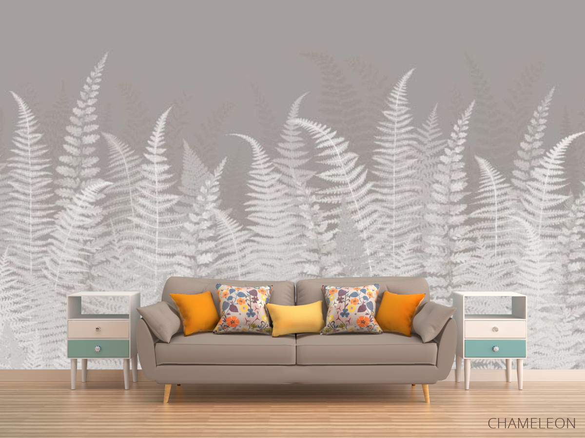 Фотообои Листья папоротника серые