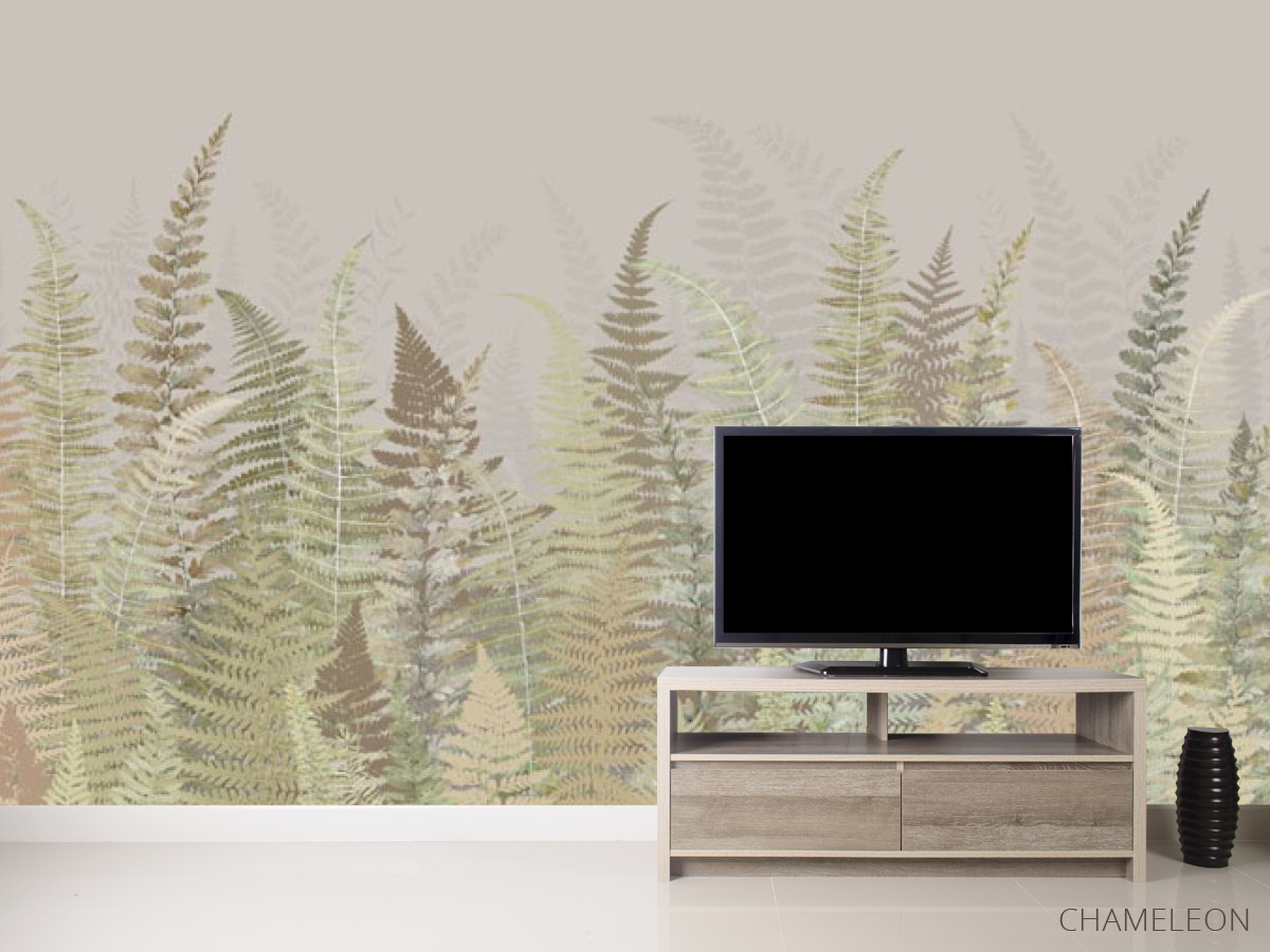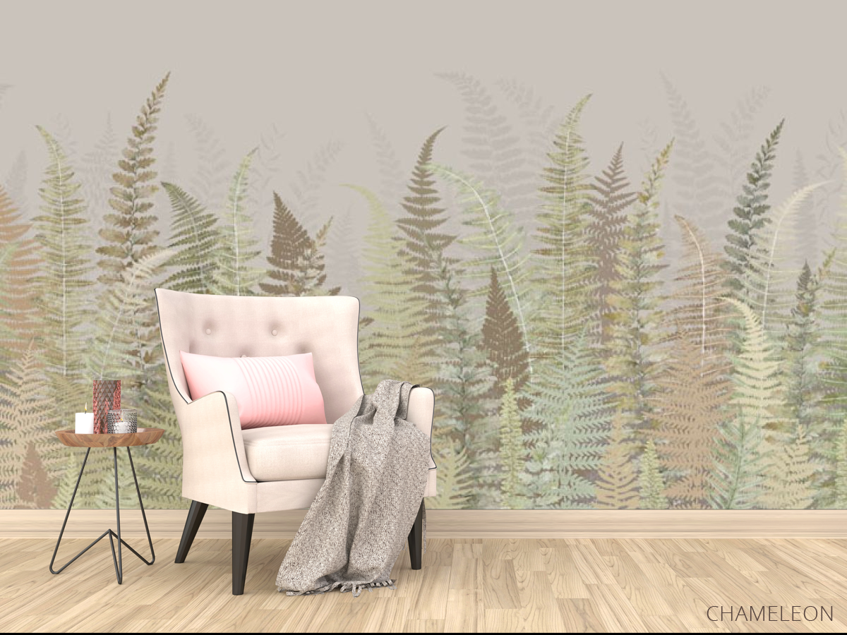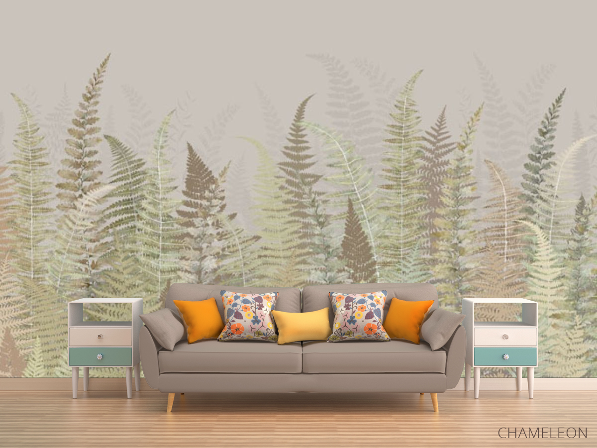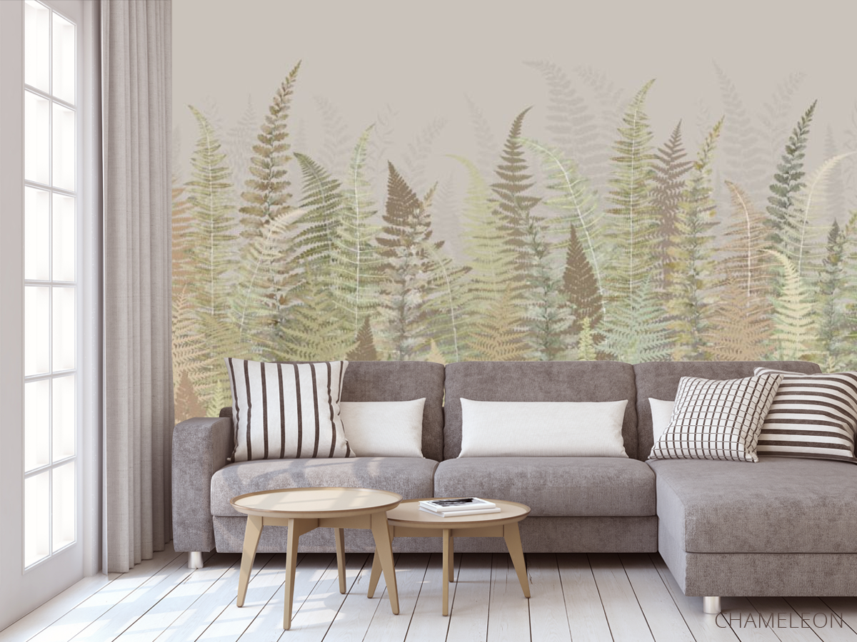 Фотообои Листья папоротнику зелено бежевый оттенок