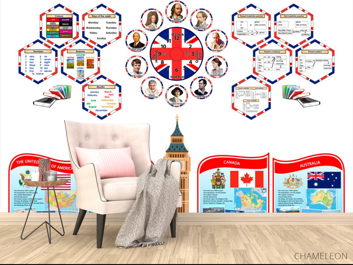 Времяпровождение в школе занимает весомую часть жизни и хочется, чтобы оно было комфортным и уютным. Фотообои для школы – отличный вариант украсить класс, коридор, столовую или библиотеку. Обширный выбор ярких изображений точно не оставит равнодушным. Географические карты, портреты писателей, математические формулы, таблица Менделеева – каждый найдет то, что подходит под стиль кабинета. Фотообои изготовлены из материалов высокого качества, которые не вызывают аллергию, не выделяют токсических веществ и абсолютно безопасны. Рисунок нанесен очень четко и детально, а благодаря качественным краскам, он не выгорает и остается в первозданном виде на протяжении нескольких лет.