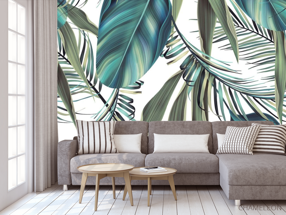 Современный интерьер в большинстве случаев исполнен из пастельных оттенков и порой хочется внести в них немного яркости. Фотообои тропические листья станут отличным решениям для тех, кто желает разбавить стиль комнаты и придать ему природной бодрости, красочности и создать атмосферу жарких стран. Такие обои чудесно впишутся в обстановку спальни, кухни или гостиной. Фотообои Тропические листья добавят в дом комфорта и уюта, а также будут радовать глаз на протяжении многих лет. Обои изготовлены из материалов высокого качества, не вызывают аллергию и не выгорают на солнце. Вы можете выбрать бумажную или флизилиновую основу, но вне зависимости от этого, клеить их абсолютно легко: достаточно лишь нанести клей на стену и прикрепить полотно.