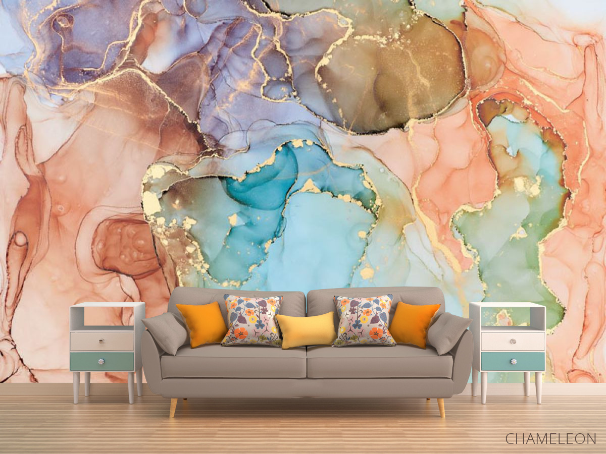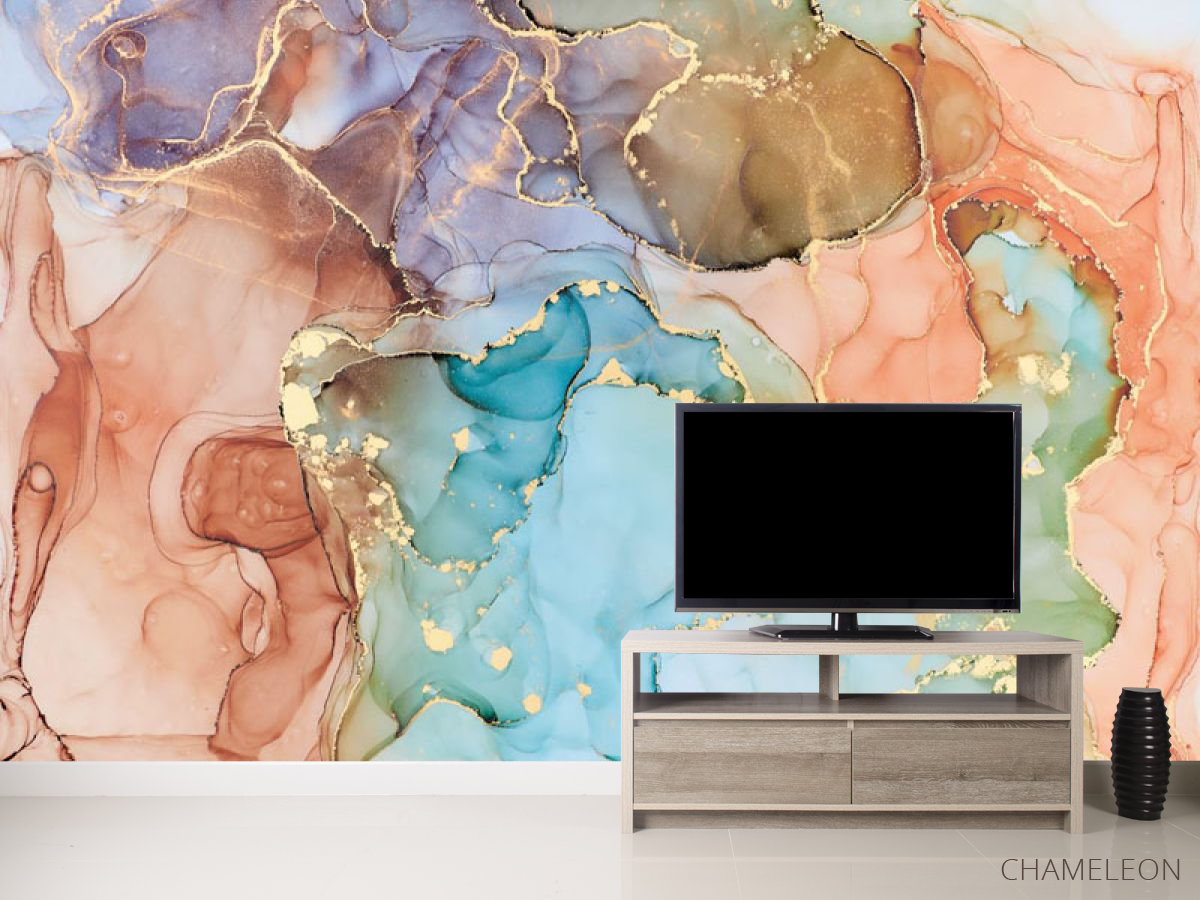 «Фотообои Цветной флюид с золотом», (арт. 33819) - купить в интернет-магазине Chameleon