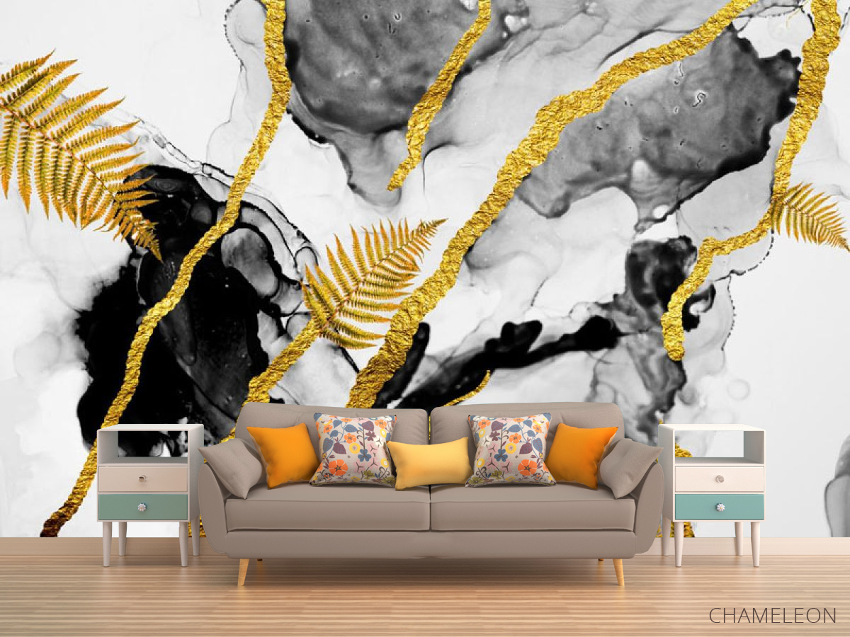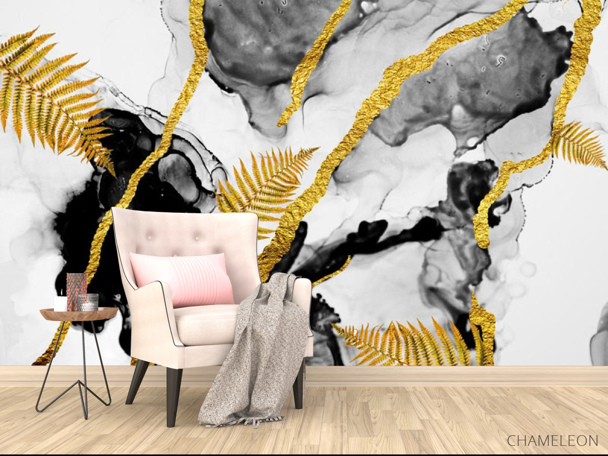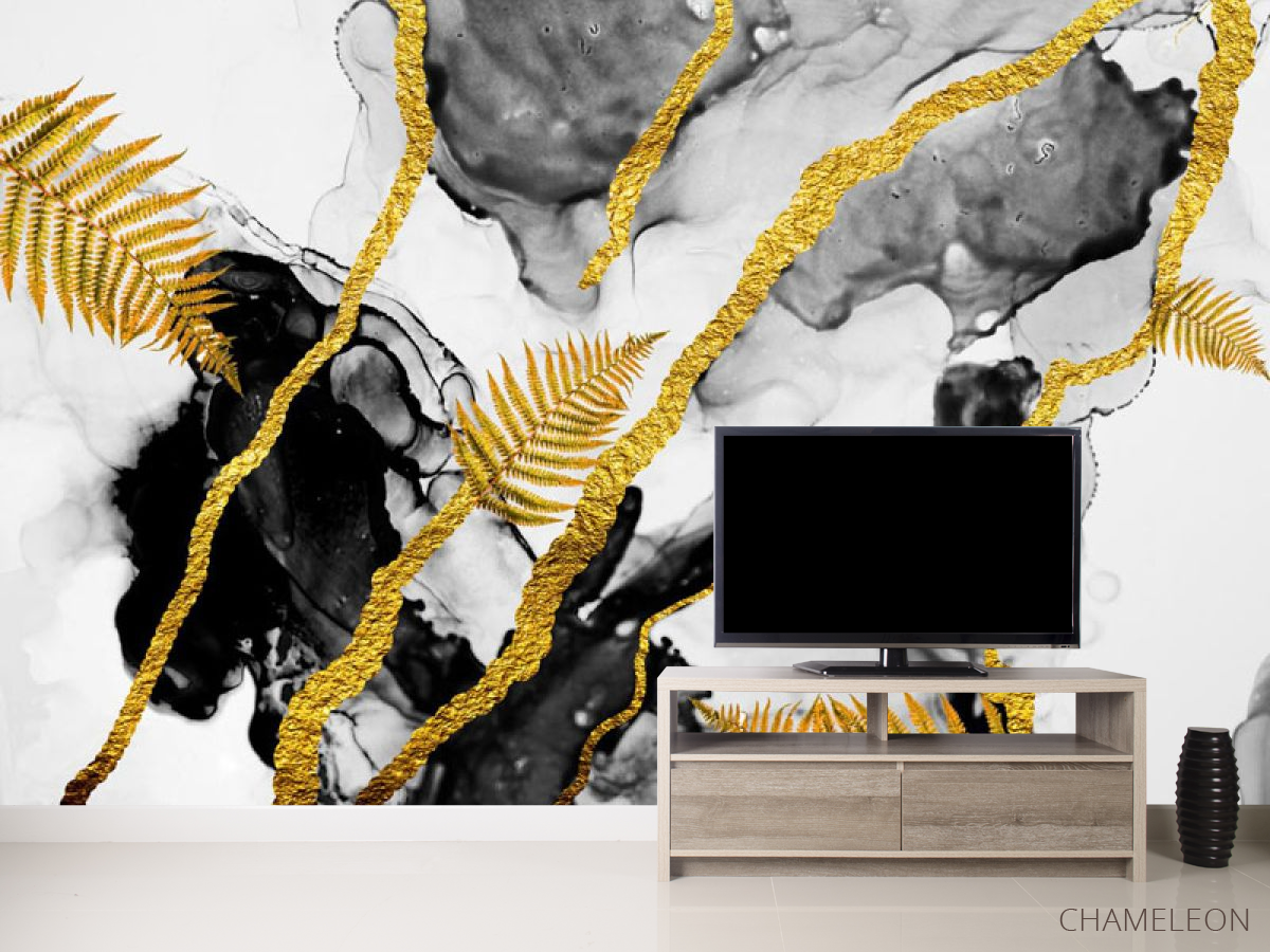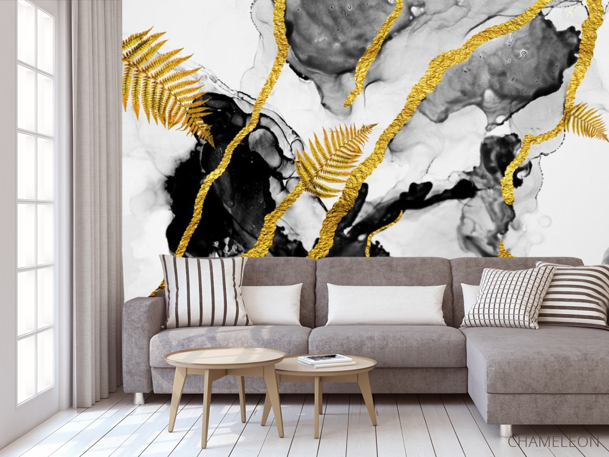 «Фотообои Черные разводы флюид арт с золотом.», (арт. 33837) - купить в интернет-магазине Chameleon