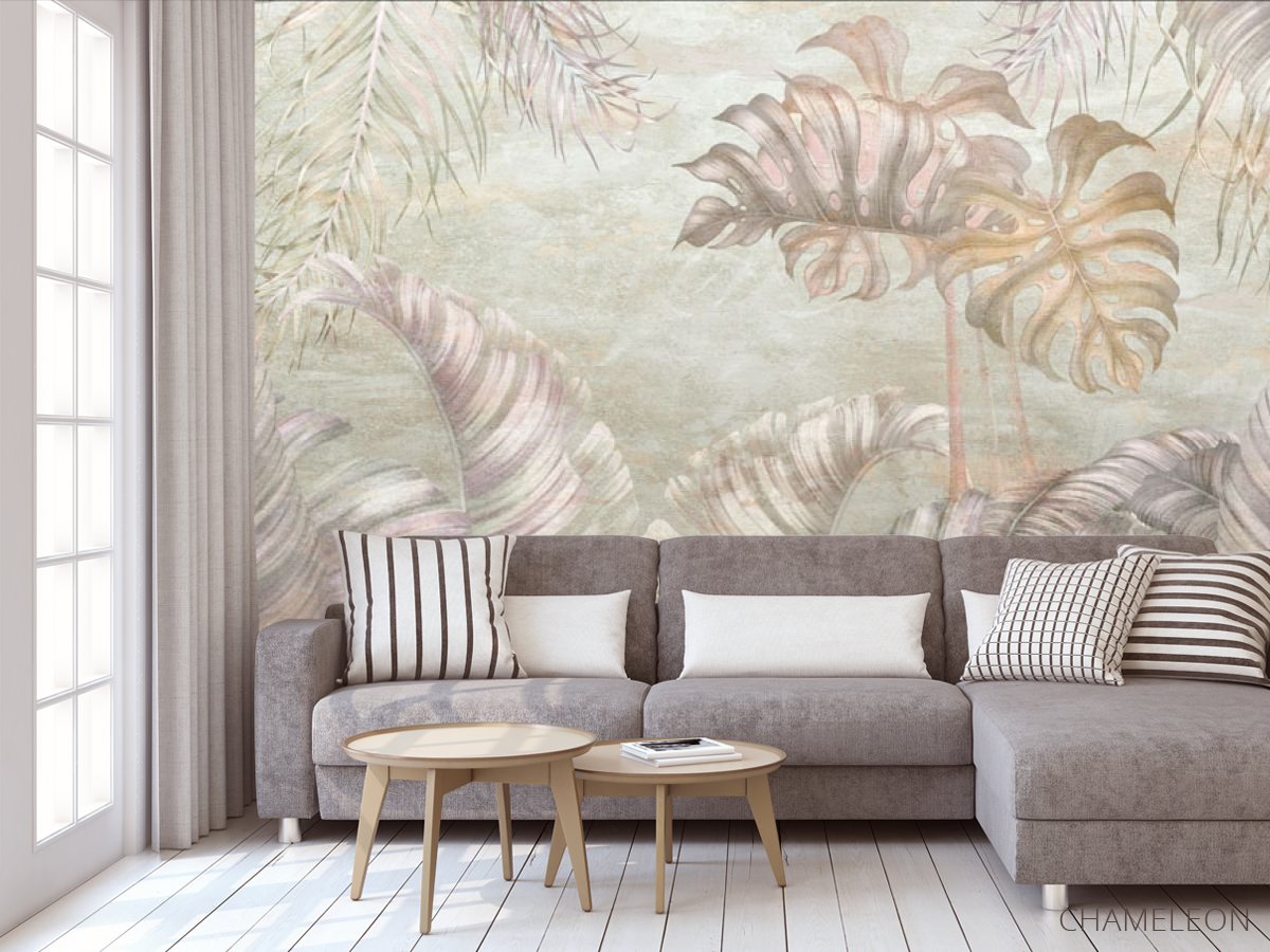 Современный интерьер в большинстве случаев исполнен из пастельных оттенков и порой хочется внести в них немного яркости. Фотообои тропические листья станут отличным решениям для тех, кто желает разбавить стиль комнаты и придать ему природной бодрости, красочности и создать атмосферу жарких стран. Такие обои чудесно впишутся в обстановку спальни, кухни или гостиной. Фотообои Тропические листья добавят в дом комфорта и уюта, а также будут радовать глаз на протяжении многих лет. Обои изготовлены из материалов высокого качества, не вызывают аллергию и не выгорают на солнце. Вы можете выбрать бумажную или флизилиновую основу, но вне зависимости от этого, клеить их абсолютно легко: достаточно лишь нанести клей на стену и прикрепить полотно.