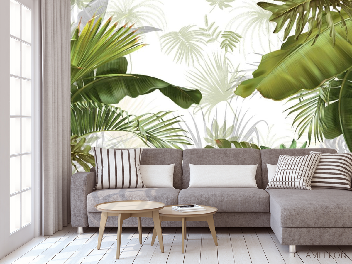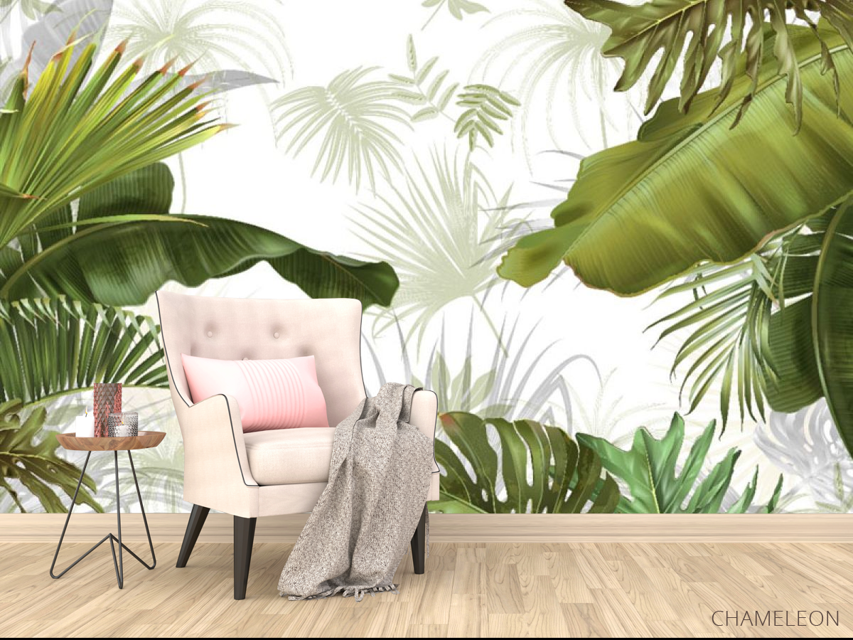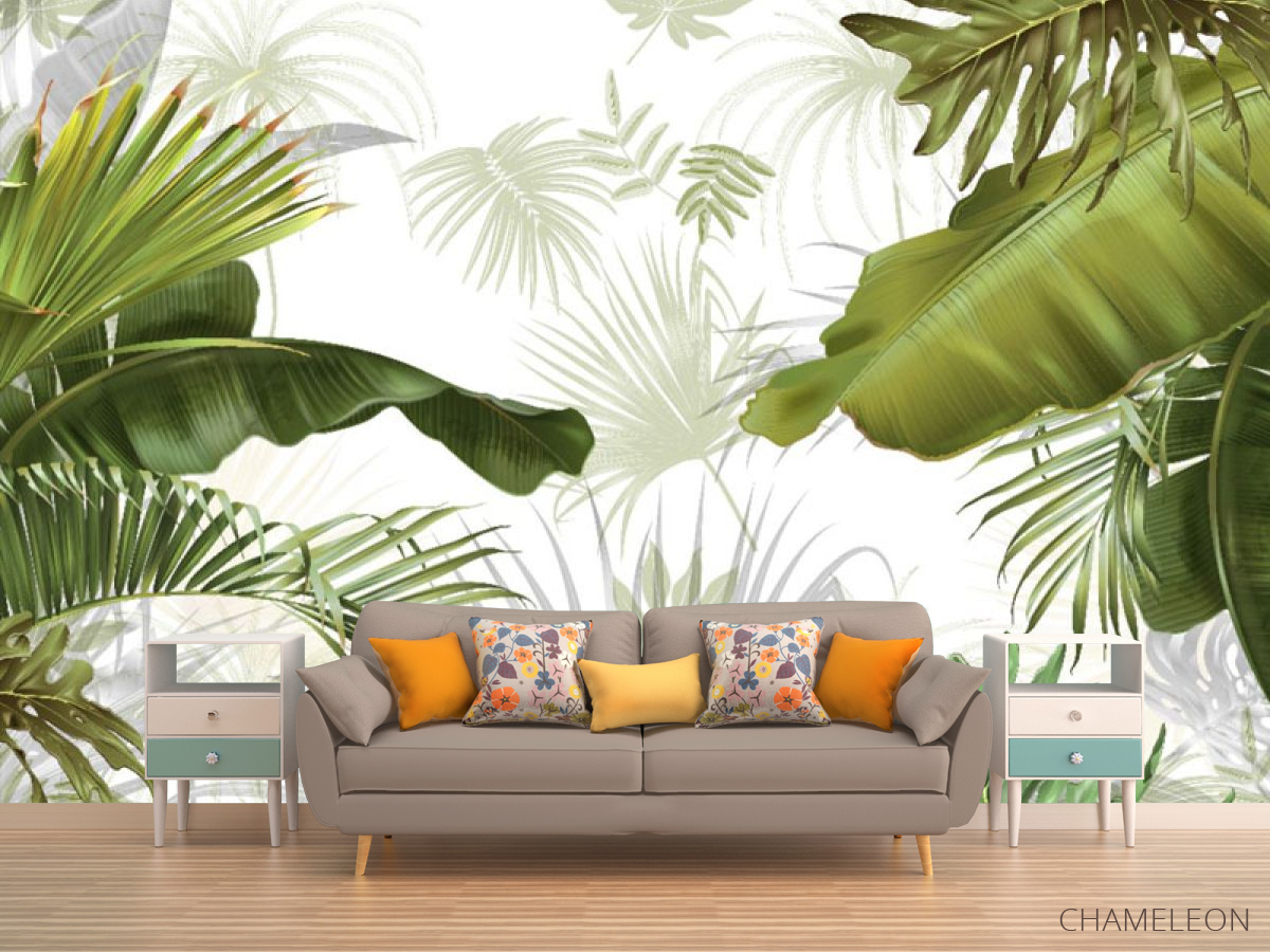 Современный интерьер в большинстве случаев исполнен из пастельных оттенков и порой хочется внести в них немного яркости. Фотообои тропические листья станут отличным решениям для тех, кто желает разбавить стиль комнаты и придать ему природной бодрости, красочности и создать атмосферу жарких стран. Такие обои чудесно впишутся в обстановку спальни, кухни или гостиной. Фотообои Тропические листья добавят в дом комфорта и уюта, а также будут радовать глаз на протяжении многих лет. Обои изготовлены из материалов высокого качества, не вызывают аллергию и не выгорают на солнце. Вы можете выбрать бумажную или флизилиновую основу, но вне зависимости от этого, клеить их абсолютно легко: достаточно лишь нанести клей на стену и прикрепить полотно.