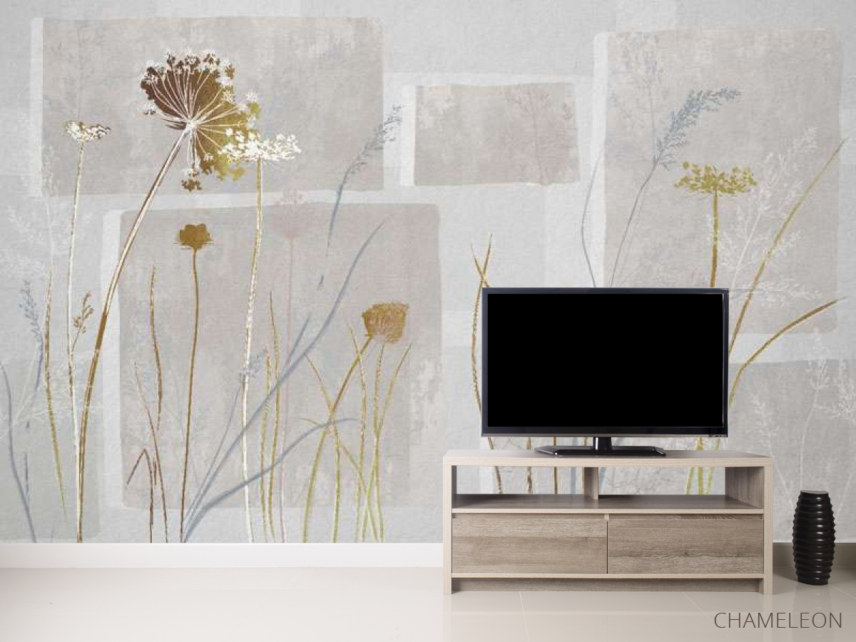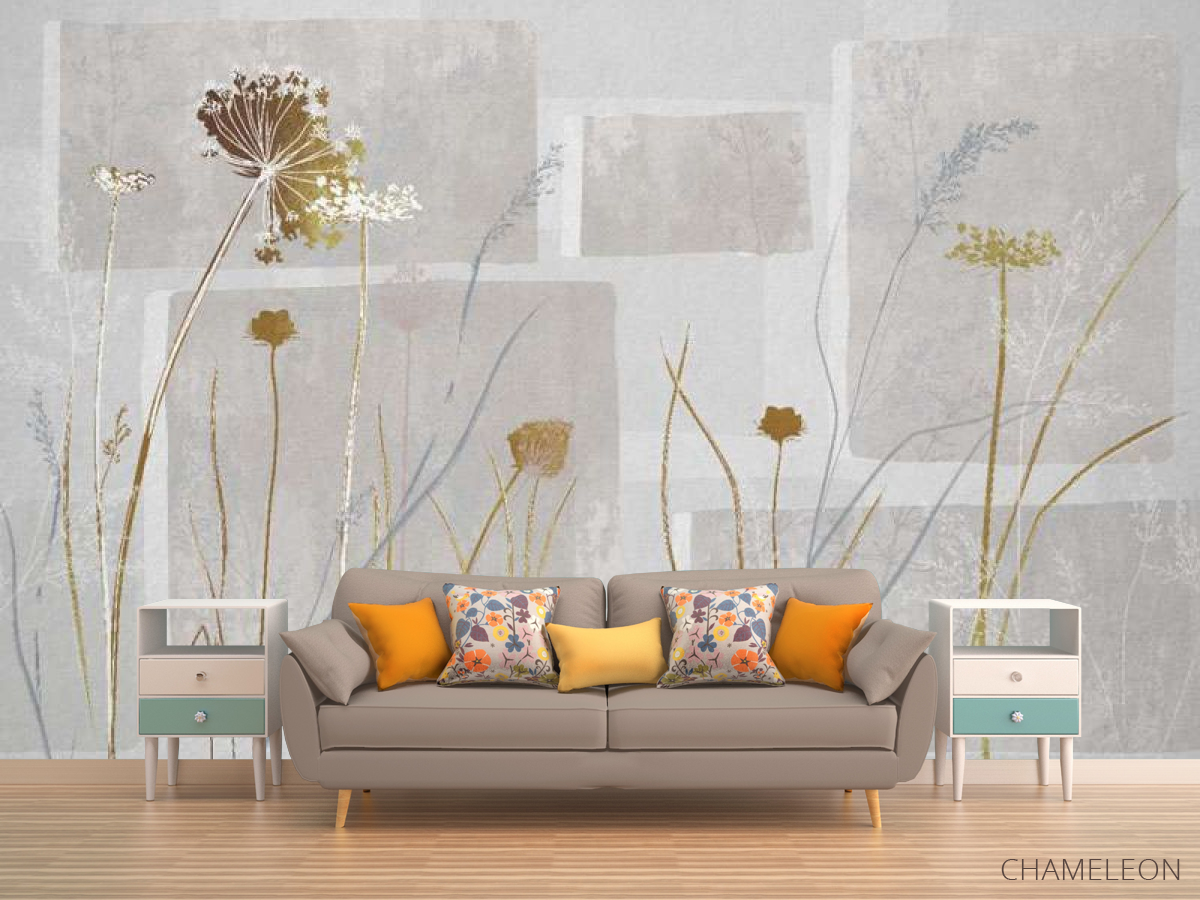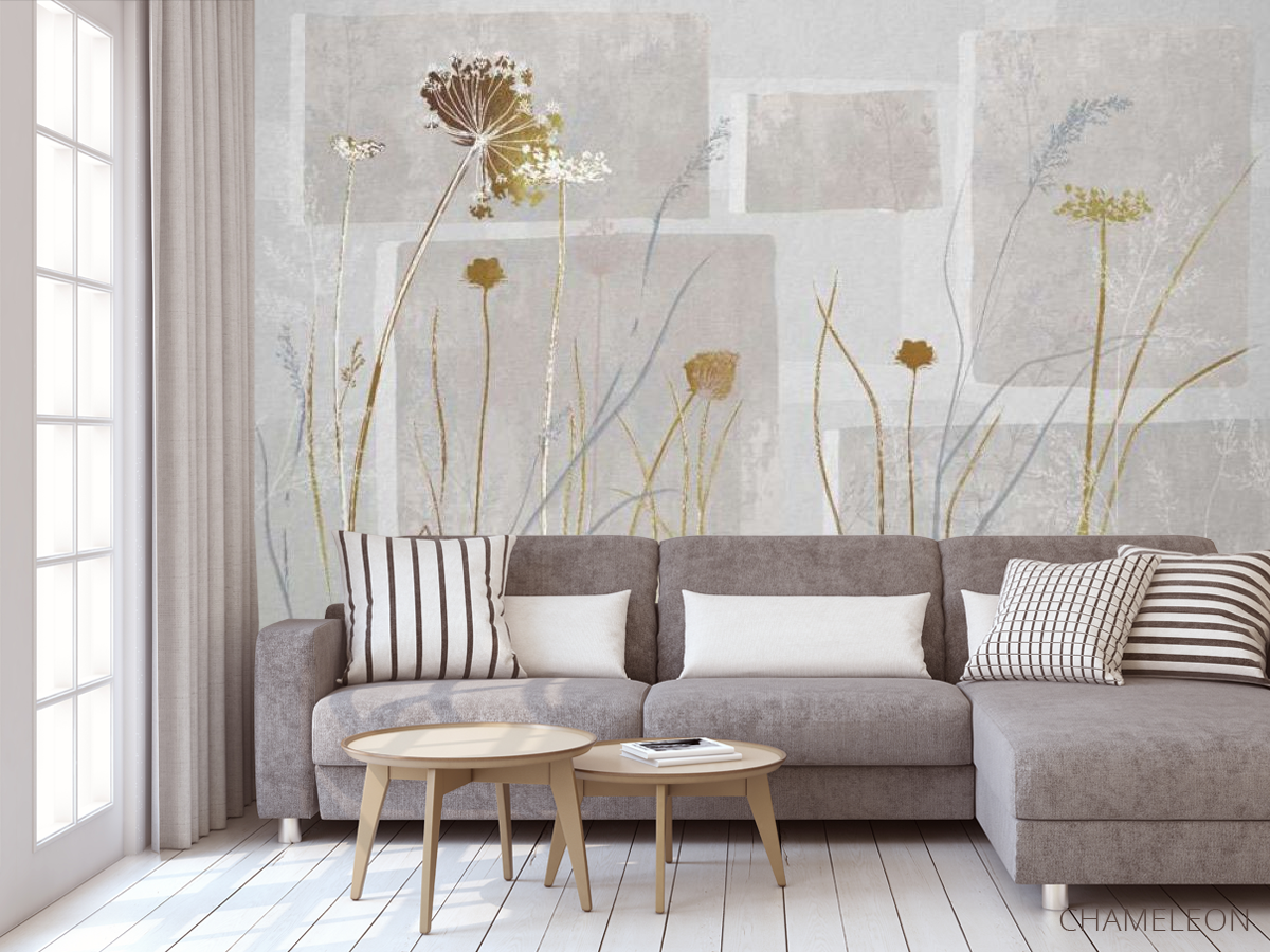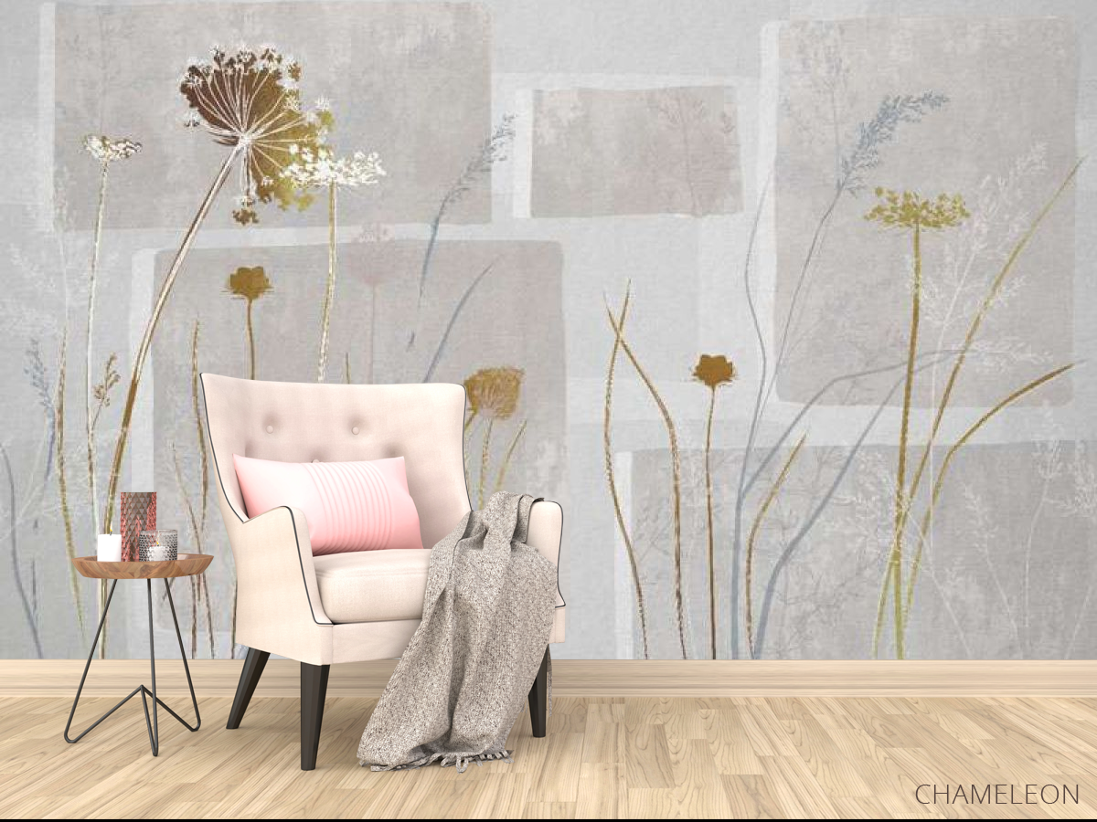 Фотообои Сушеные цветы на сером дизайнерском фоне.