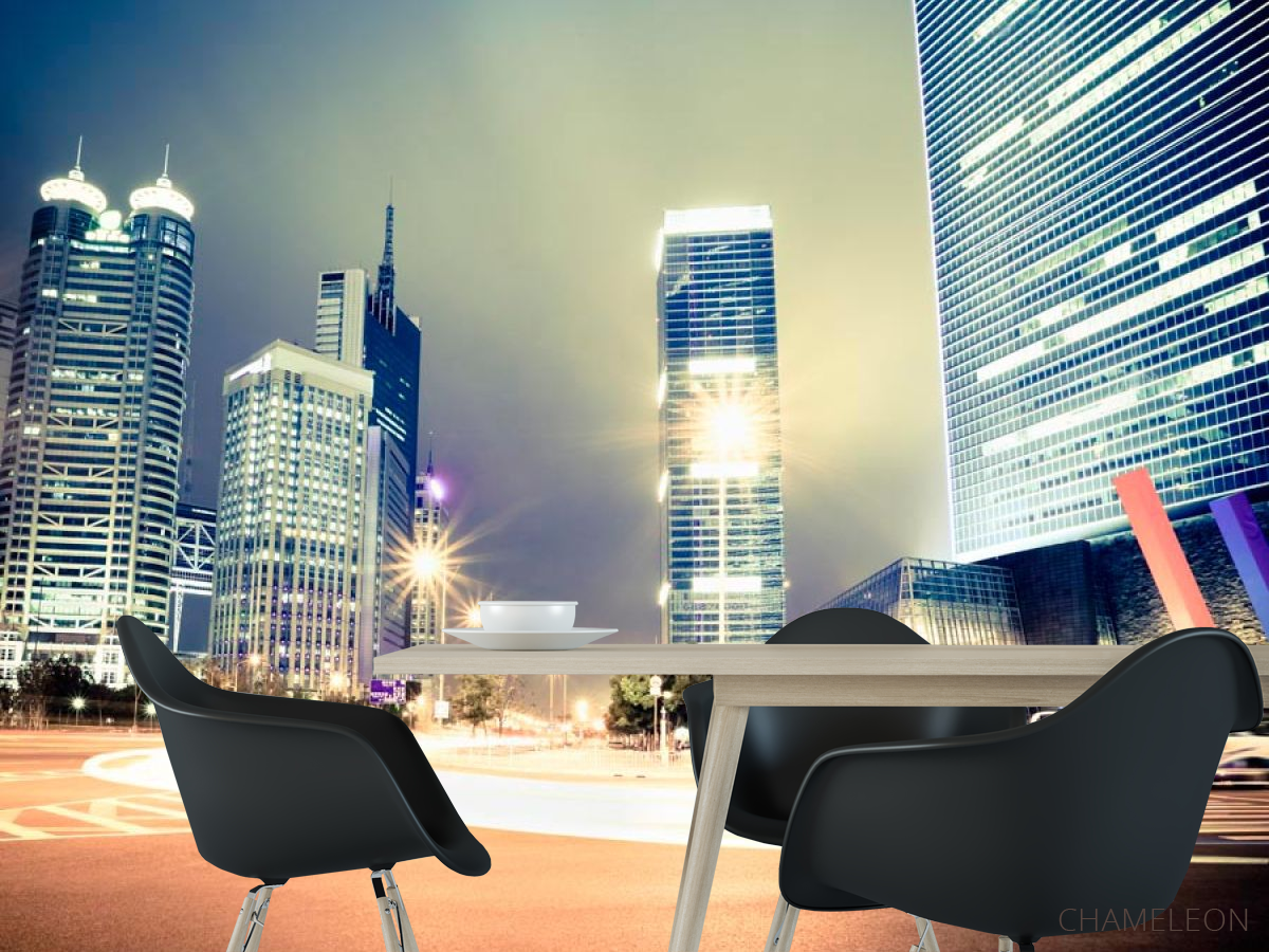 «Фотообои Вечер, многоэтажки, свет», (арт. 6837) - купить в интернет-магазине Chameleon