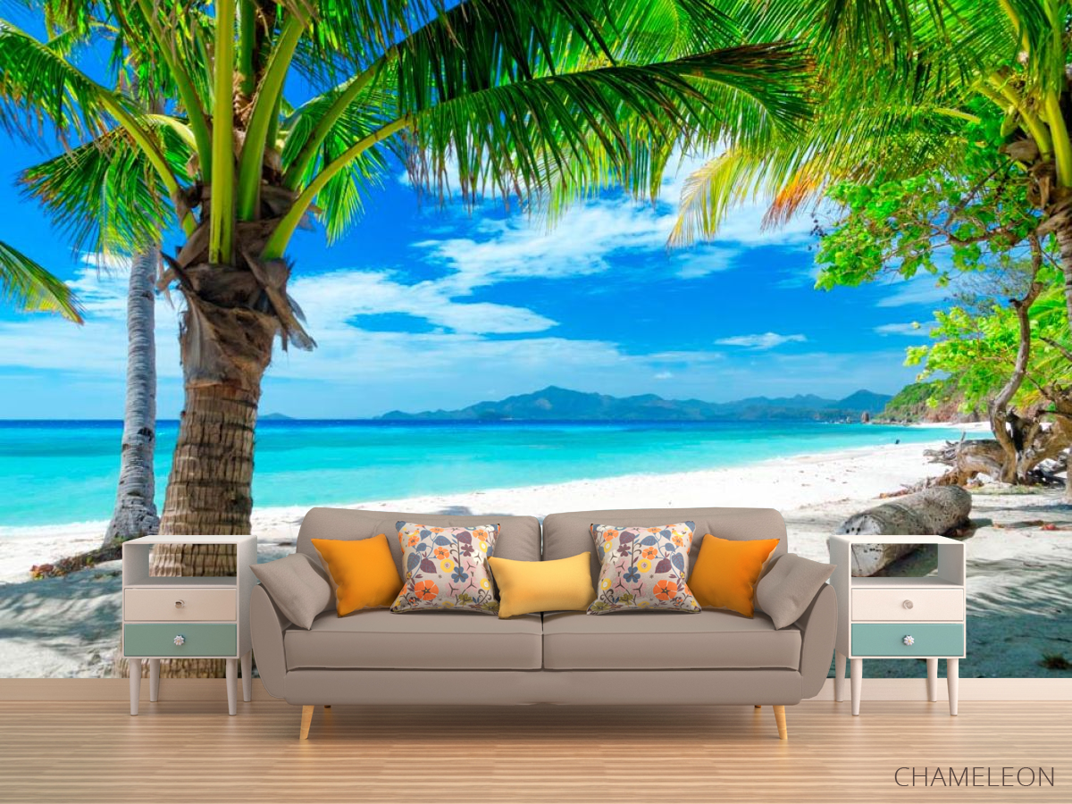 «Фотообои Пляж с пальмами», (арт. 6955) - купить в интернет-магазине Chameleon