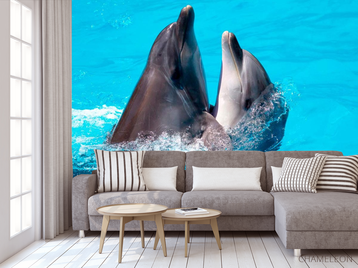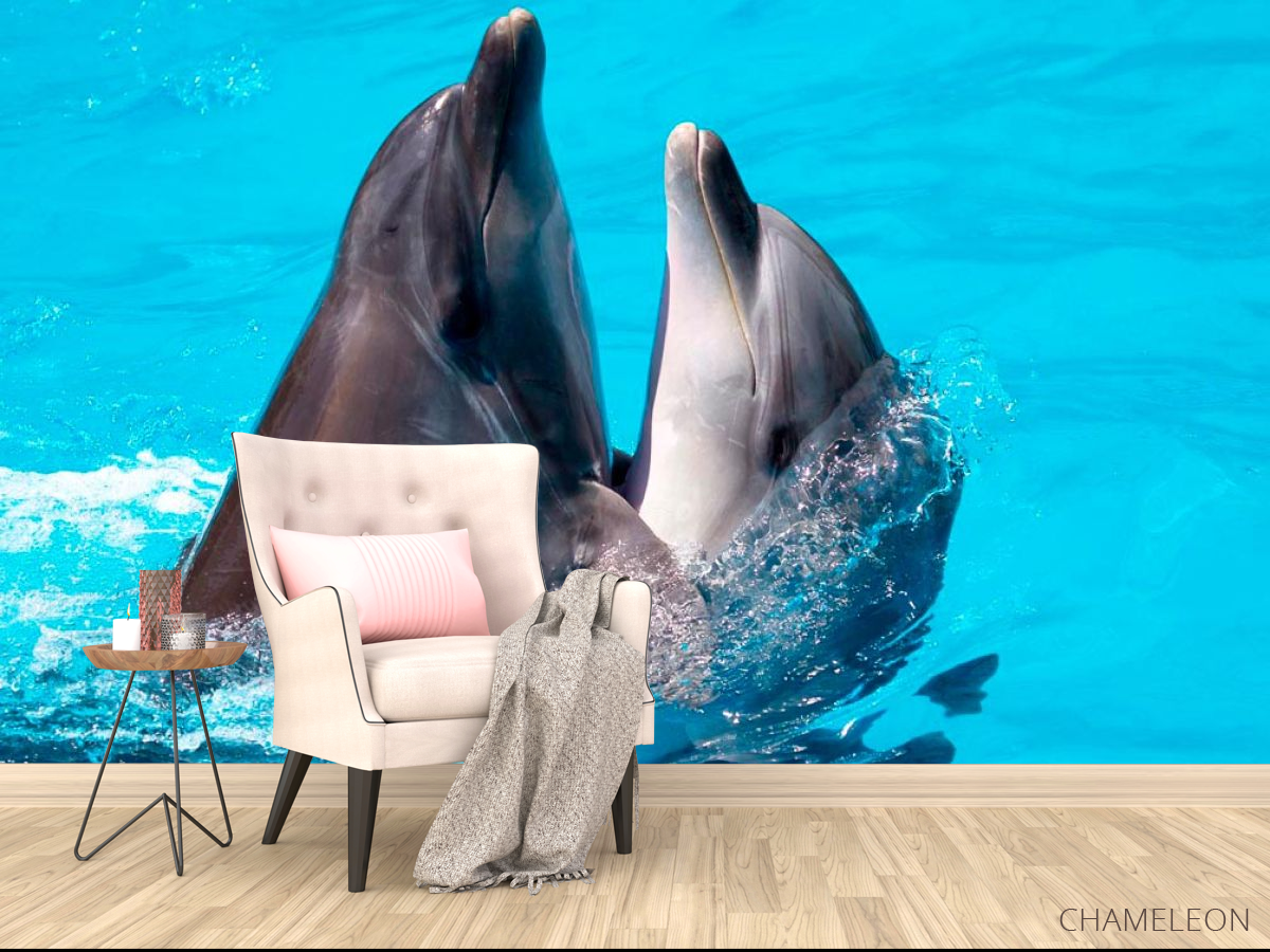 Самыми умными и милыми животными, которые лечат множество человеческих болезней по праву являются дельфины. От них исходит солнечная, добрая энергетика, они нас прекрасно понимают без слов. Фотообои Дельфины – это возможность придать вашему дому уют и теплую атмосферу. Изображения милых дельфинчиков будут поднимать вам настроение каждый день! Они прекрасно дополнят интерьер любой комнаты: кухни, спальни, гостиной и станут своеобразным оберегом вашего дома. Обои изготовлены из качественных материалов, безопасны и стойки к небольшим повреждениям. Рисунок выполнен ярко и красочно, краска не выгорает и будет радовать вас на протяжении нескольких лет. Вы можете также выбрать бумажную или флизилиновую основу для фотообоев Дельфины.
