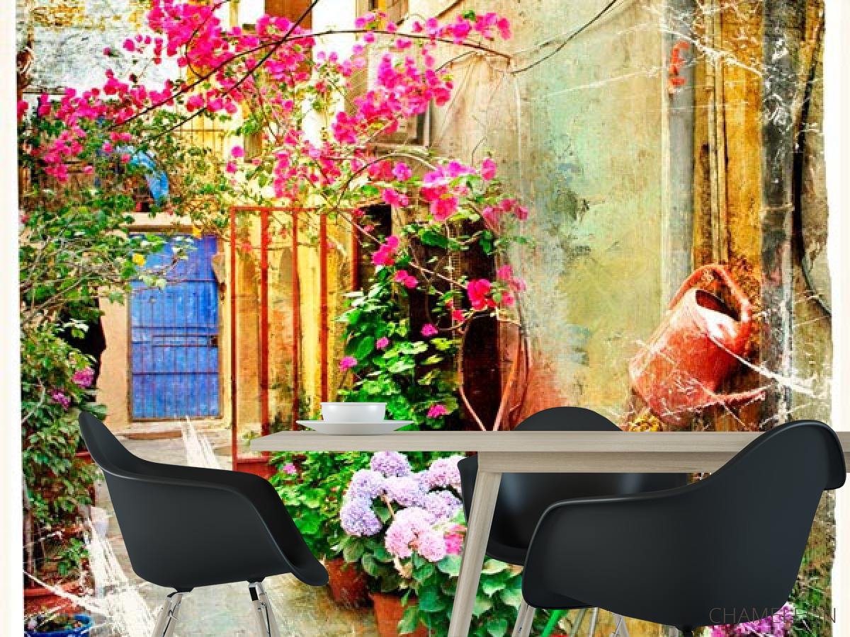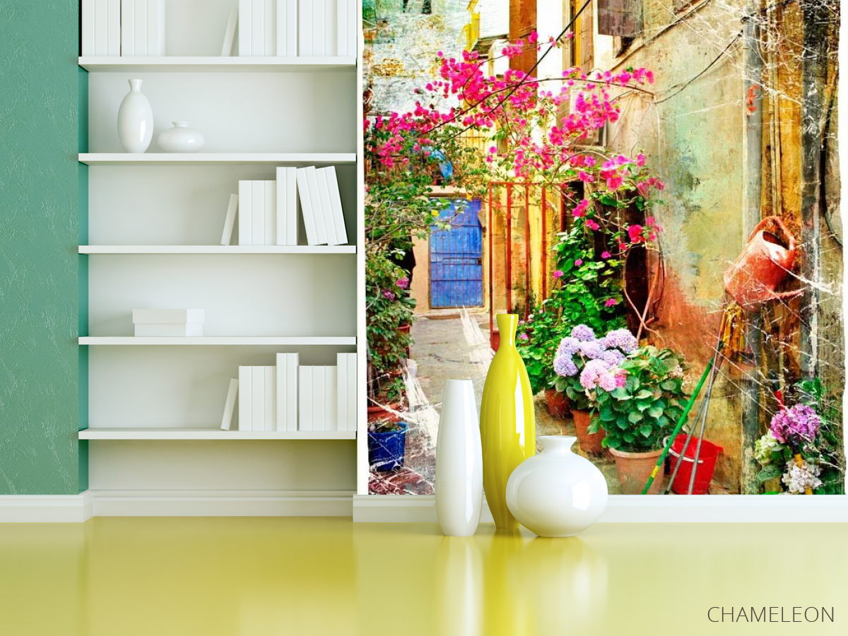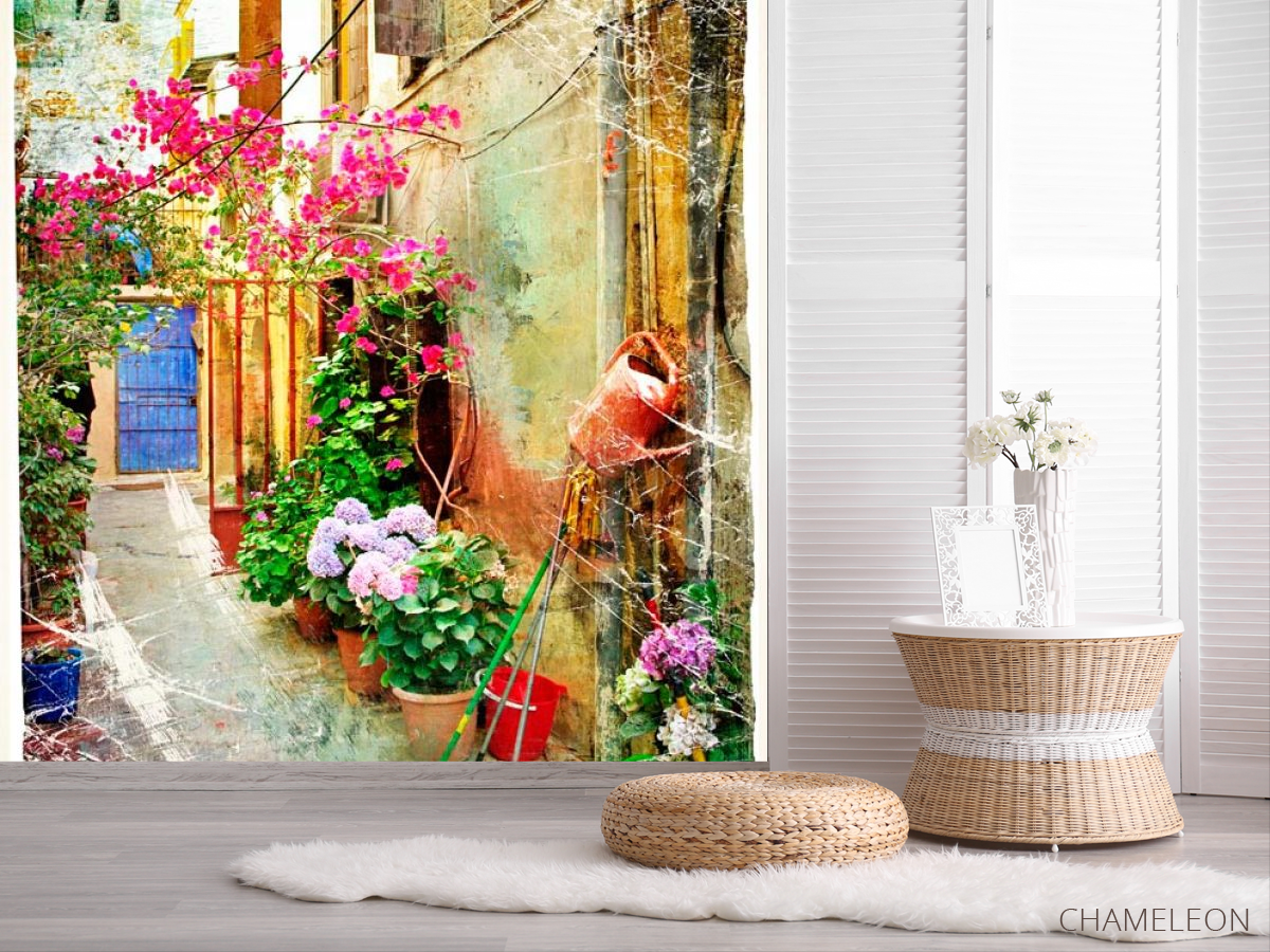 Фотошпалери Вуличка з квітами, (арт. 0056) - купити в інтернет-магазині Chameleon