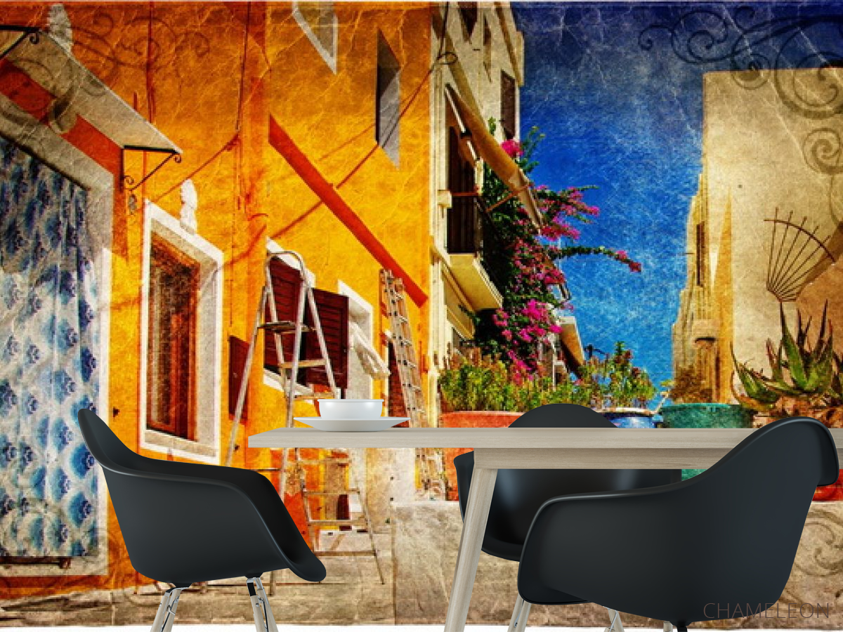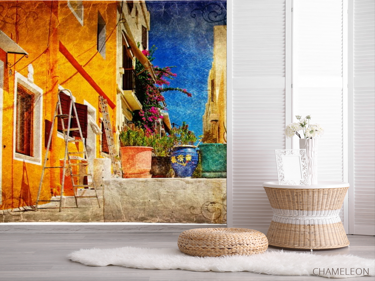 Фотошпалери Квіти в горщиках на тлі будинку, (арт. 0313) - купити в інтернет-магазині Chameleon