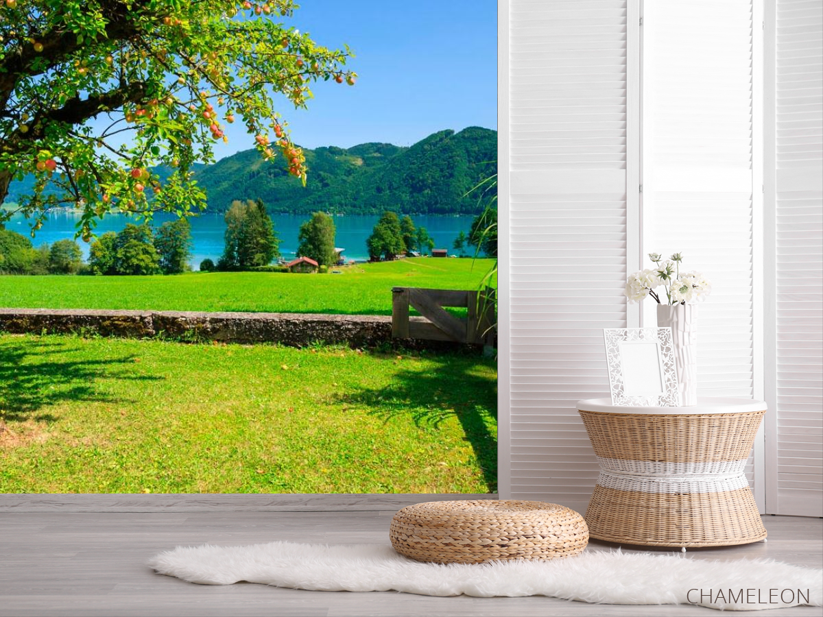 Фотошпалери Фотошпалери Яблуня, гори, вода