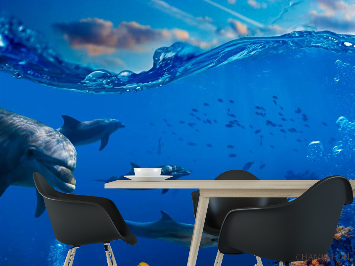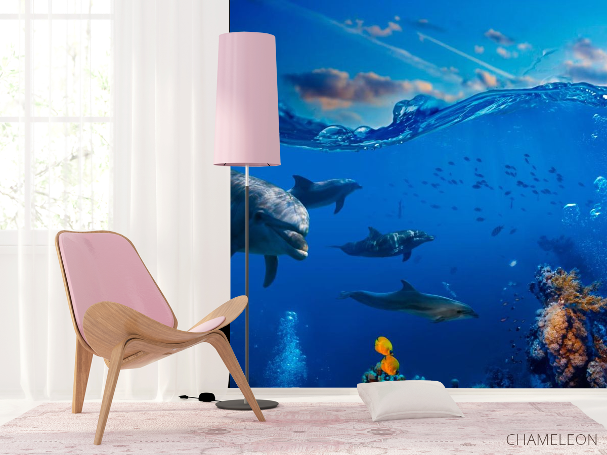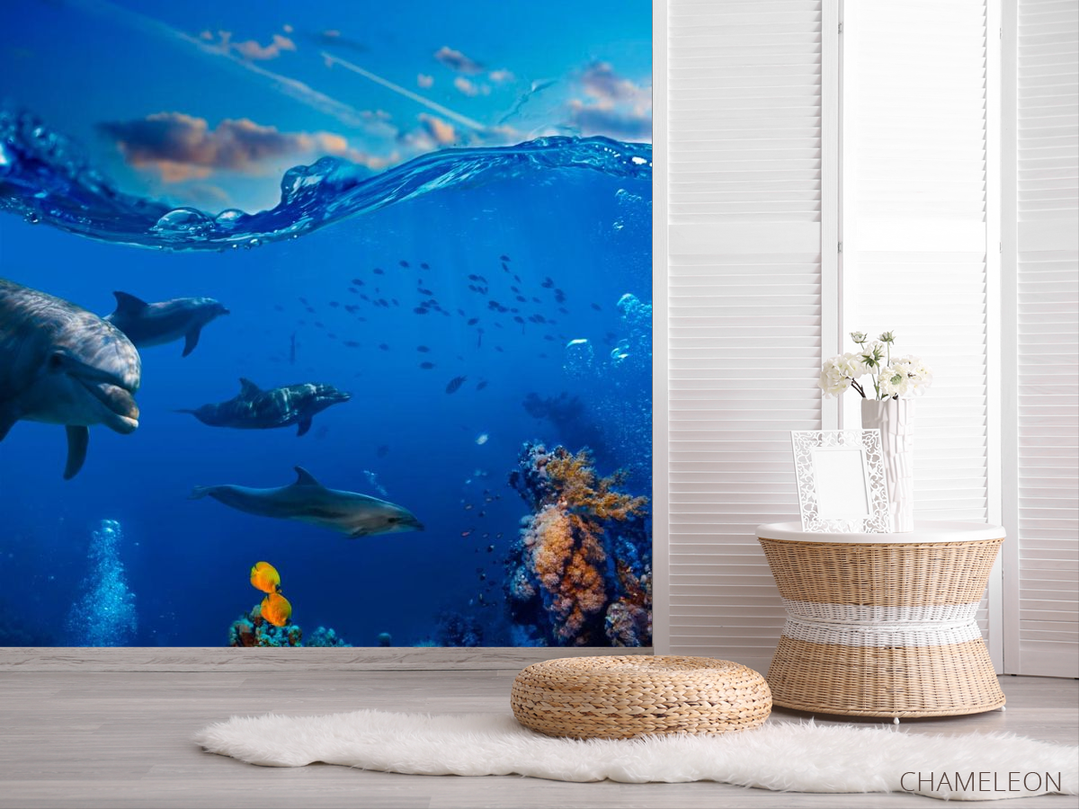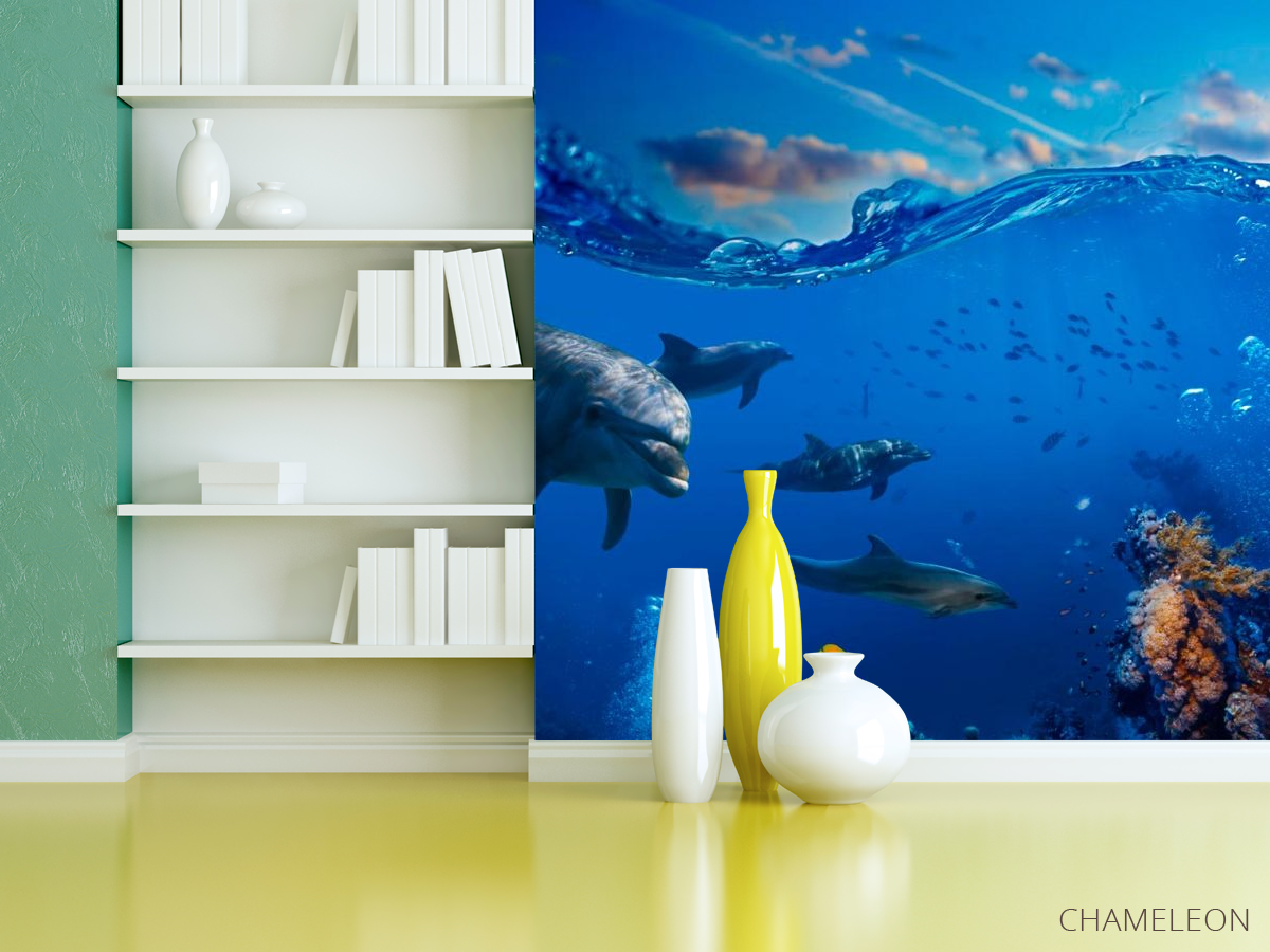 Найрозумнішими і милими тваринами, які лікують безліч людських хвороб по праву є Дельфіни. Від них виходить Сонячна, Добра енергетика, вони нас прекрасно розуміють без слів. Фотообоі Дельфіни - це можливість додати вашому будинку затишок і теплу атмосферу. Зображення милих дельфінчиків будуть піднімати вам настрій кожен день! Вони прекрасно доповнять інтер'єр будь-якої кімнати: кухні, спальні, вітальні і стануть своєрідним оберегом вашого будинку. Шпалери виготовлені з якісних матеріалів, безпечні і стійкі до невеликих пошкоджень. Малюнок виконаний яскраво і барвисто, фарба не вигоряє і буде радувати вас протягом декількох років. Ви можете також вибрати паперову або флізелінову основу для фотошпалер Дельфіни.