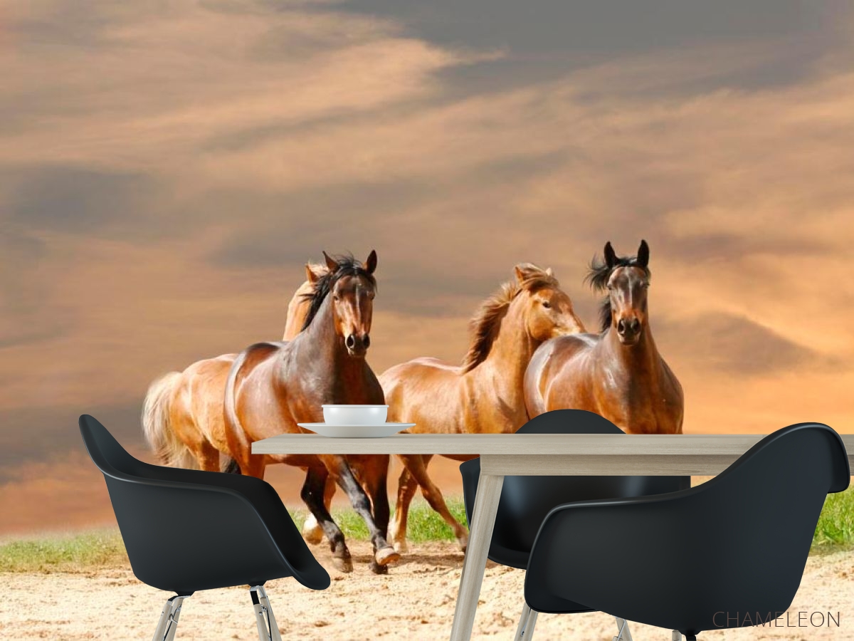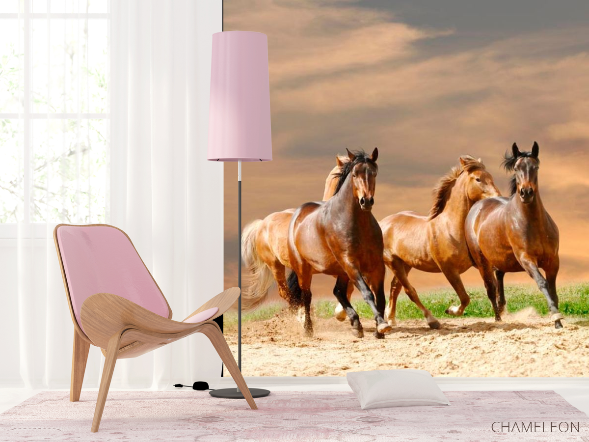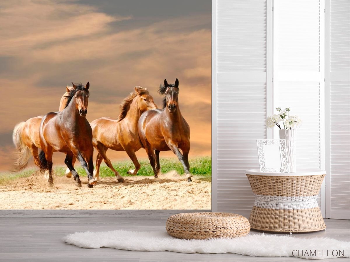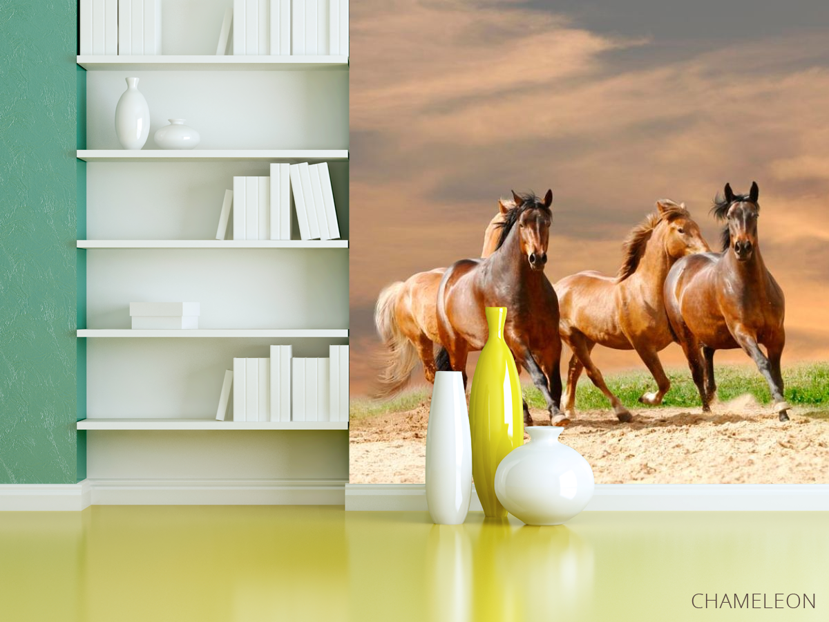 Фотообоі коні - це прекрасне рішення для прикраси будинку або тематичного закладу. Із зображенням милої конячки в поле або біжить табуна де-небудь в горах ви точно зможете надати приміщенню оригінальність і підкреслити смак. Фотошпалери Коні внесуть шматочок природи і огорнуть своєю енергетикою. Свобода і впевненість цієї тварини не залишить байдужим нікого і допоможе створити комфорт і затишок в кімнаті. Шпалери виготовлені з матеріалів високої якості, основу для них ви можете вибрати або паперову, або флізелінову. Вони абсолютно безпечні, не викликають алергію і стійкі до невеликих пошкоджень. Фотошпалери клеяться без особливих зусиль-достатньо лише нанести клей на стінку і прикріпити полотно.