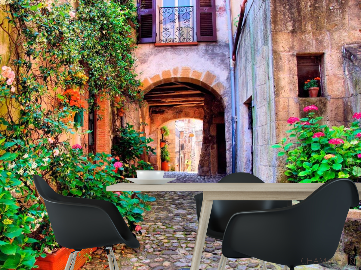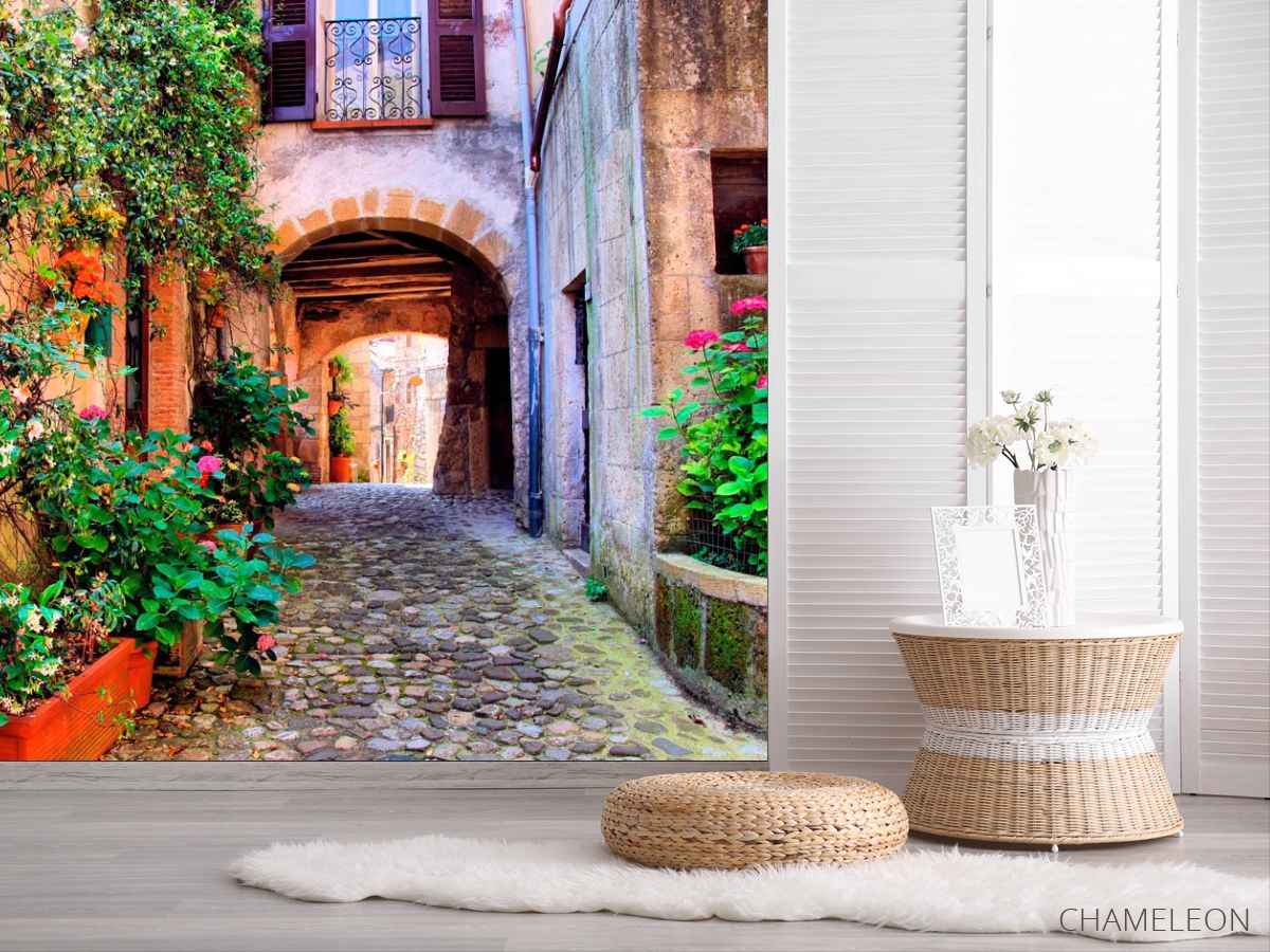 Фотошпалери Арочна вуличка з квітами