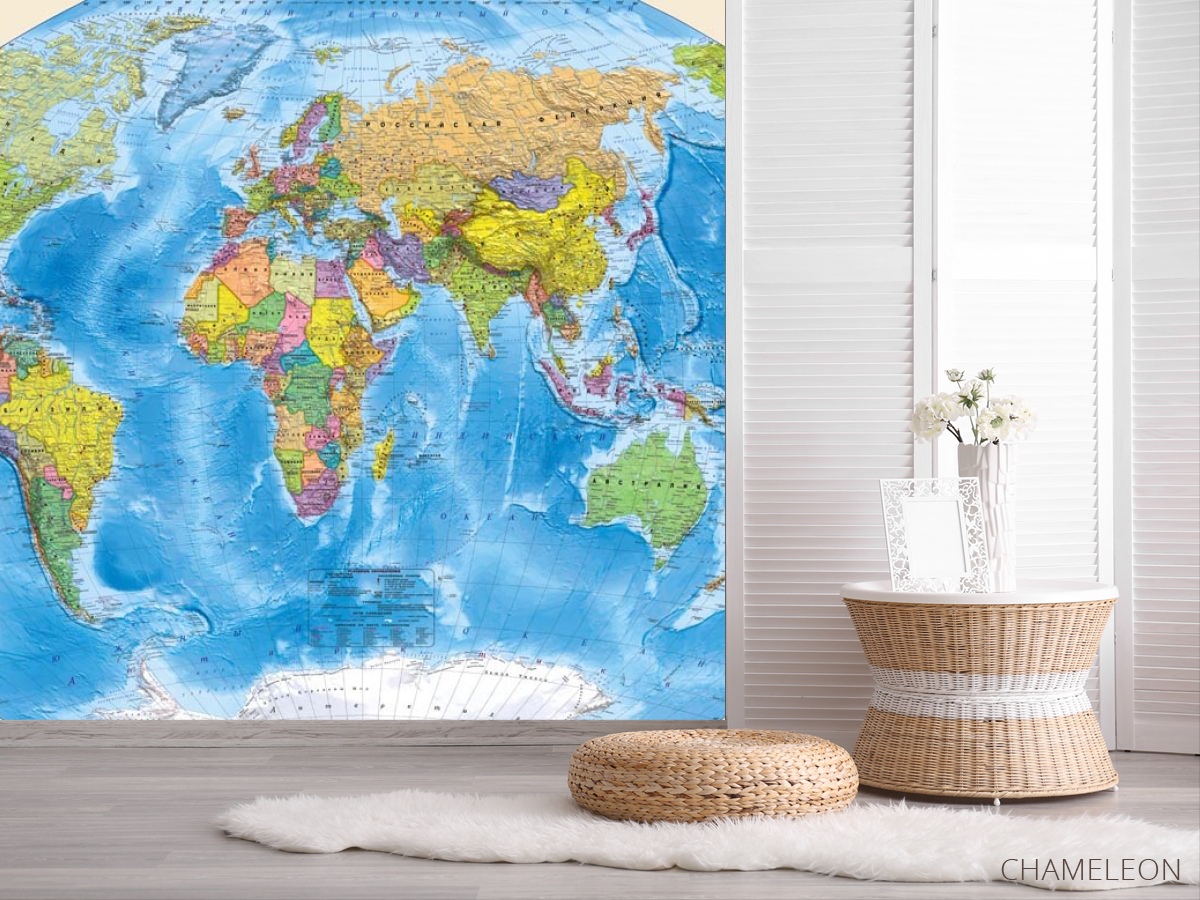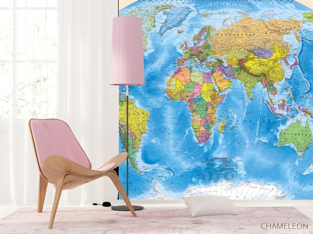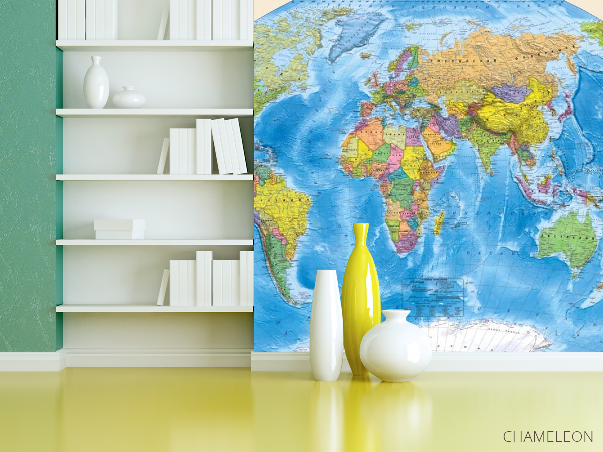 Фотошпалери карта світу є дуже хорошим вибором як для будинку (в вітальню, робочий кабінет або кухню), так і для інших будівель (в школу, ресторан або салон краси). Вони виглядають розкішно, мають стильний дизайн і відмінно підходять під будь-яке оформлення кімнати. Сучасні фотошпалери на стіну виробляються з надійного матеріалу, який не псується і не дряпається. Зображення - це повністю безпечна фарба, яка не викликає алергії, а також залишається красивим протягом багатьох років. Ви можете впевнено використовувати шпалери, які прикрасять будь-яке приміщення. Купити стильні і оригінальні фотошпалери з картою світу можна в інтернет-магазині Chameleons.