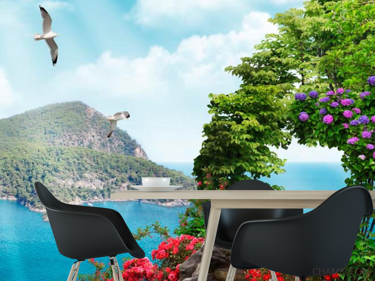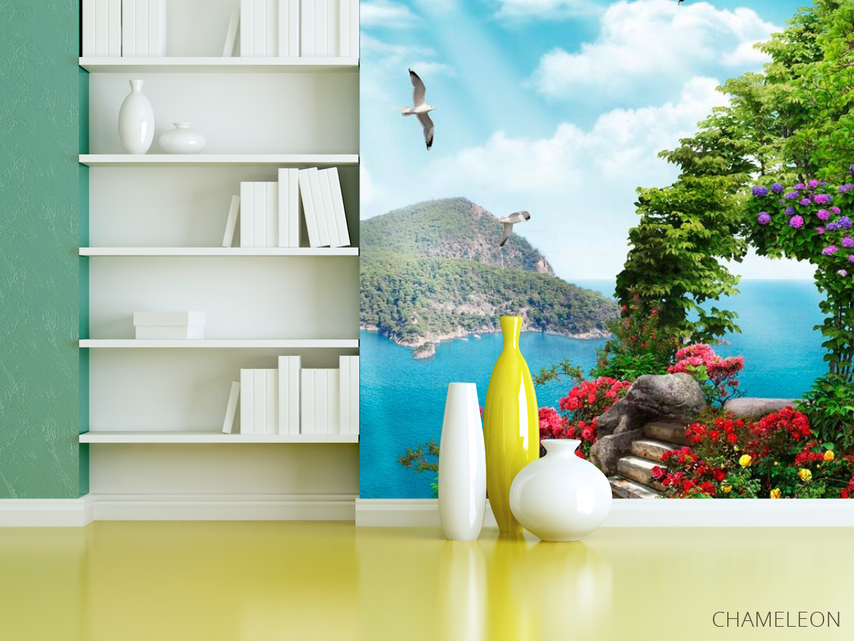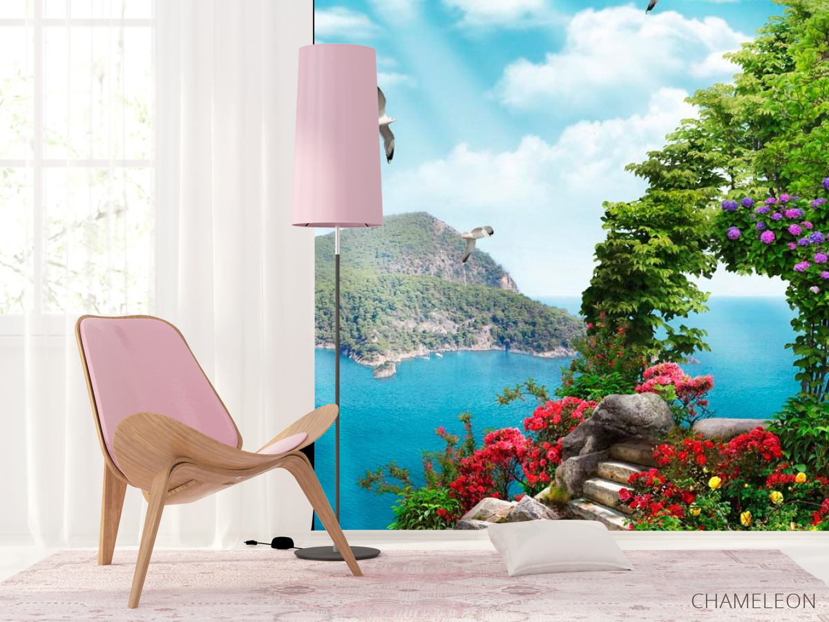 Фотошпалери Сходинки, квіти, острів
